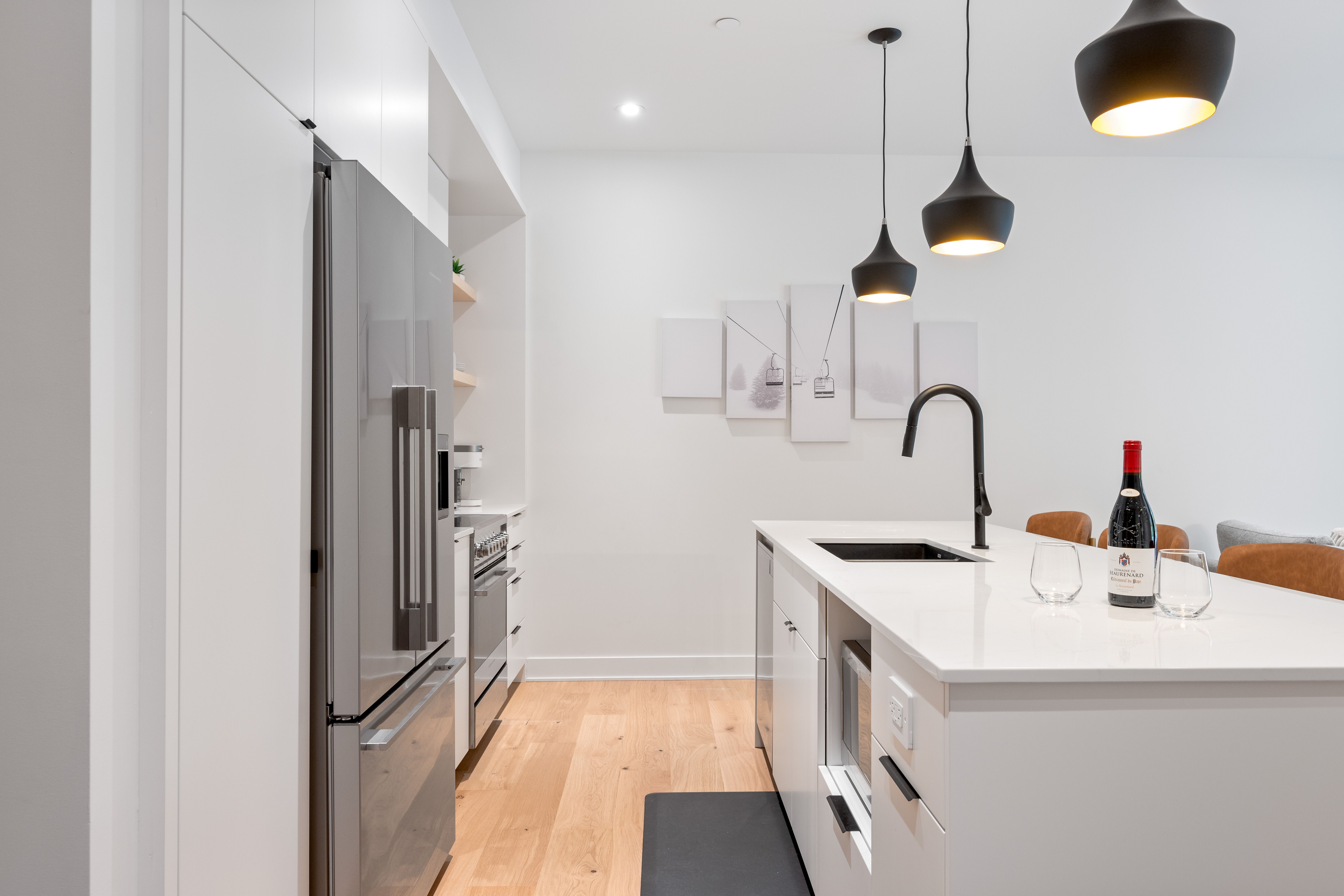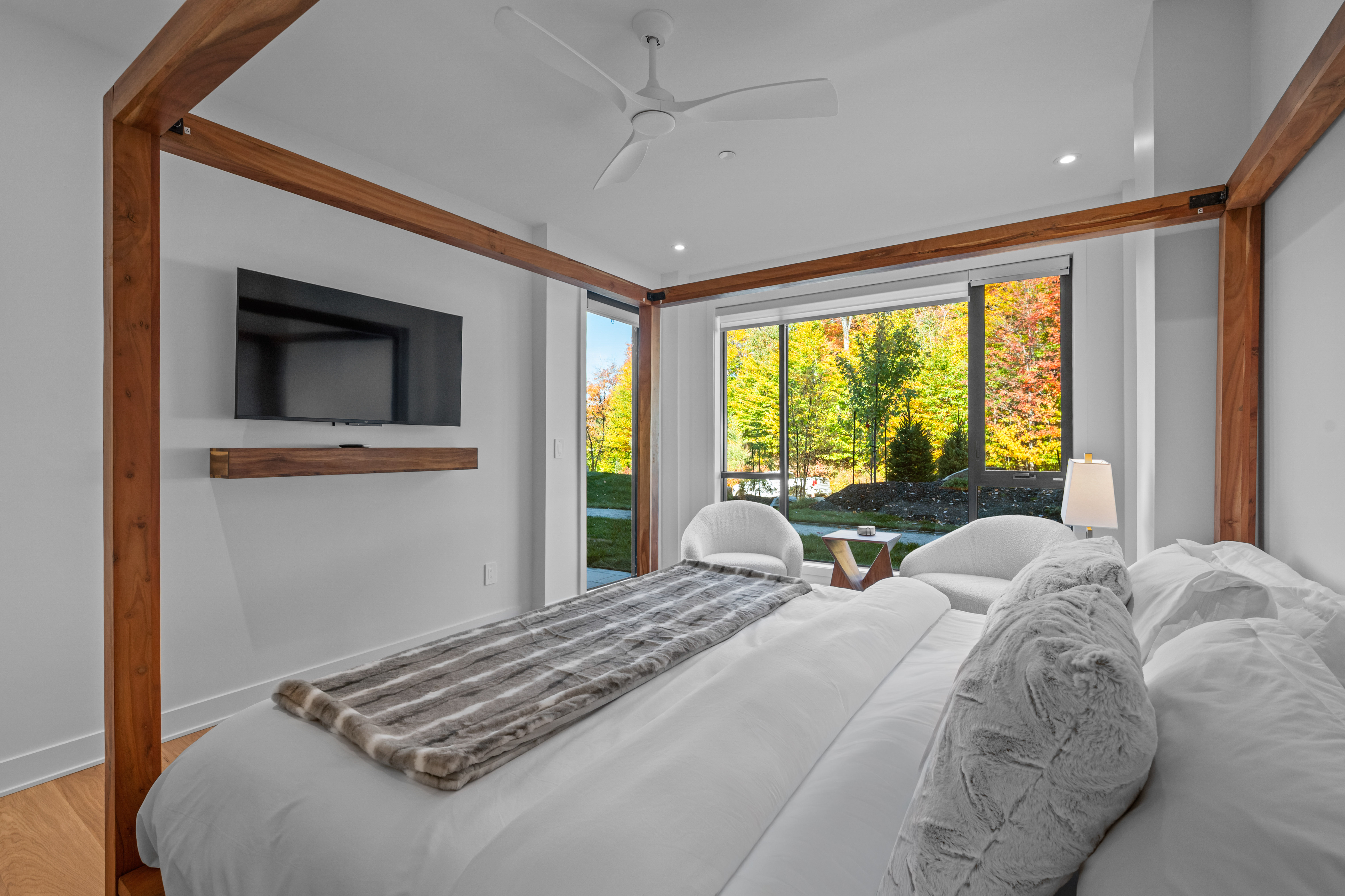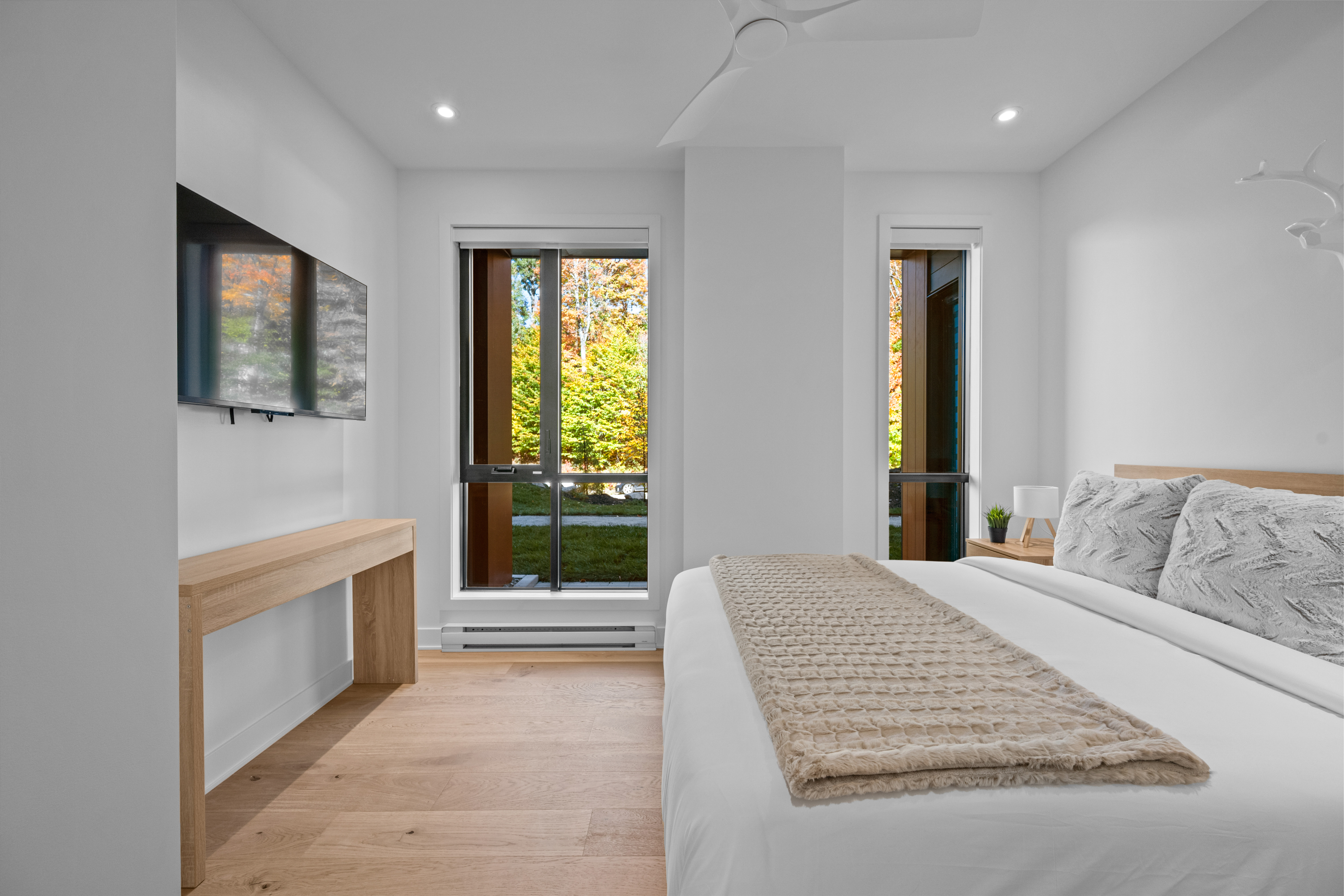 Escape to this spacious, luxurious new condo on Tremblant's Versant Soleil. A 7-minute walk from the Algonquin green ski trail. Direct access (20 meters) to the Nord-Sud hiking, mountain biking and alpine trail. This condo is located near the Casino, Golf Le Géant and Golf Le Diable. Just a 5-minute drive away, enjoy Tremblant's pedestrian village with its restaurants and boutiques. Spend your stay in a bright, modern space, fully equipped to relax in top-of-the-range comfort.