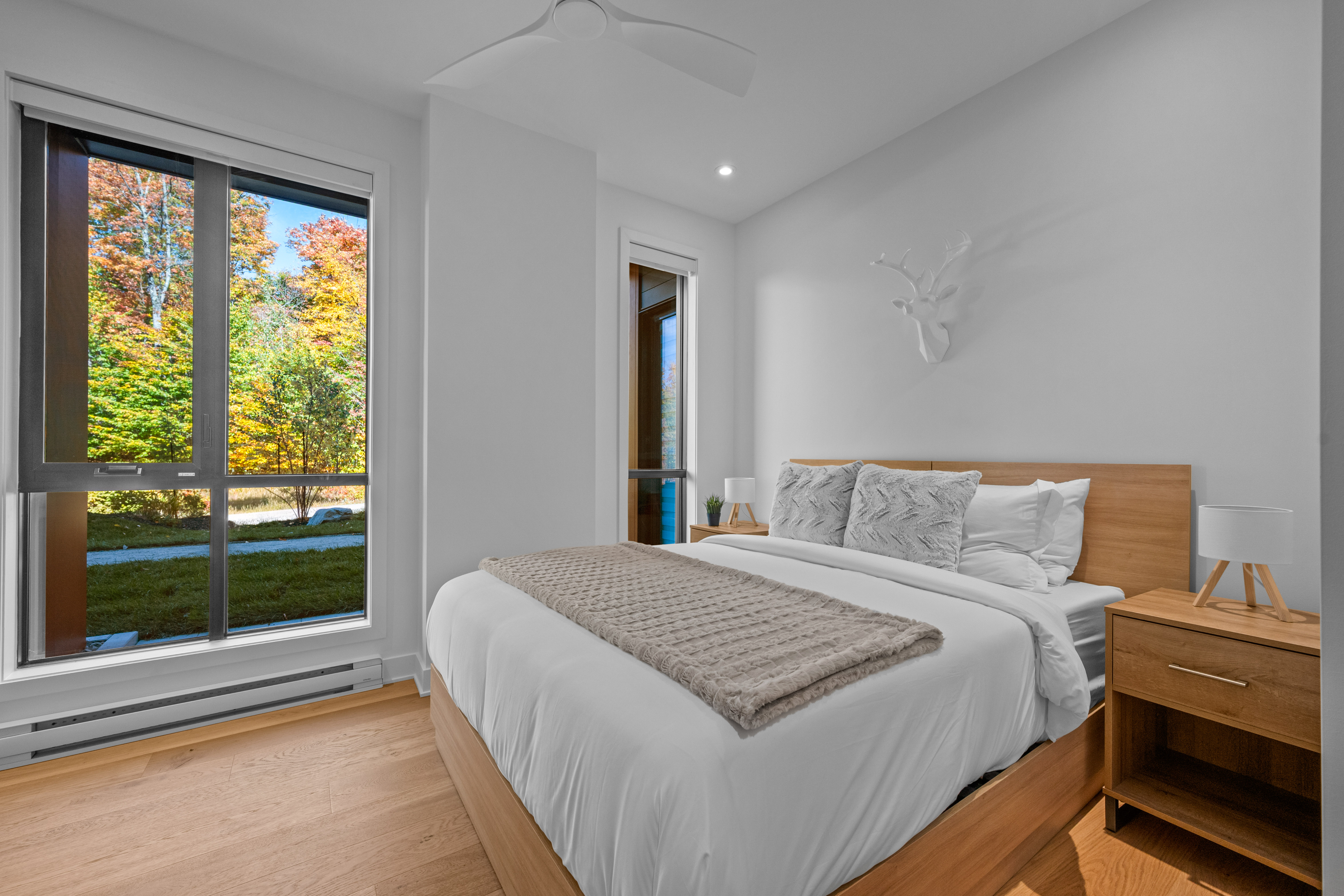 Direct access to the Nord-Sud trail just 20 meters away. A short 7-minute walk to the Algonquin ski run and Versant Soleil lift, and only 5 minutes by car to the Tremblant Village gondola. Includes a private, heated storage locker for ski, golf, and bike equipment.