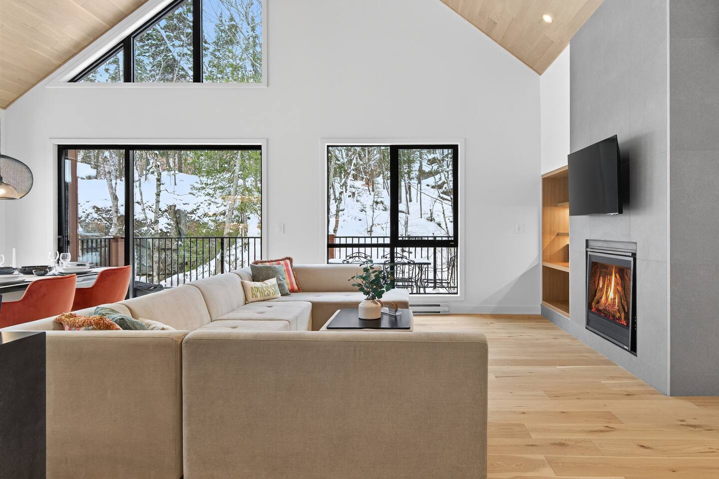 Penthouse escape on Tremblant’s Versant Soleil! This brand-new 3 bedroom condo offers luxury steps from the Algonquin ski trail and Le Soleil chairlift. Enjoy bright, modern living, a full kitchen, cozy lounge area with a gas fireplace, and a large wine cellar with bar space. With free shuttle access, you’re minutes from the Le Soleil chairlift, the Tremblant Casino, golf, hiking trails, and Tremblant’s pedestrian village with its restaurants, boutiques, and vibrant après-ski. The Space - Bedroom 1: Queen bed with an ensuite bathroom that has heated floors - Bedroom 2: Two singles - Bedroom 3: Sofa bed (double) - Bathrooms: 2 full bathrooms, including a master en-suite with heated floors, providing ample space to refresh and relax after your...