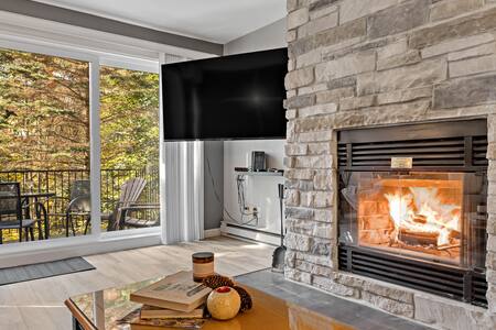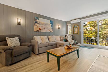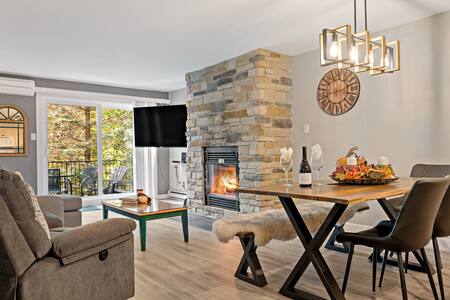Niché au cœur de Tremblant, ce condo récemment rénové offre une retraite alpine parfaite. Grâce à l'accès skis aux pieds, vous pouvez facilement dévaler les pentes et revenir dans la chaleur de votre demeure douillette. Le condo est doté d'une cheminée intérieure qui crée une ambiance chaleureuse pour les froides soirées d'hiver. Le salon à aire ouverte est doté d'un mobilier moderne et d'une cuisine bien équipée. À seulement 5 minutes de marche du village de Tremblant, vous aurez facilement accès aux restaurants, aux boutiques et aux divertissements !Les clients bénéficient d'un accès gratuit à un service de navette pratique, ce qui facilite l'exploration de Tremblant. Que vous vous dirigiez vers les pistes de ski de Chalumeau, les remontées mécaniques...