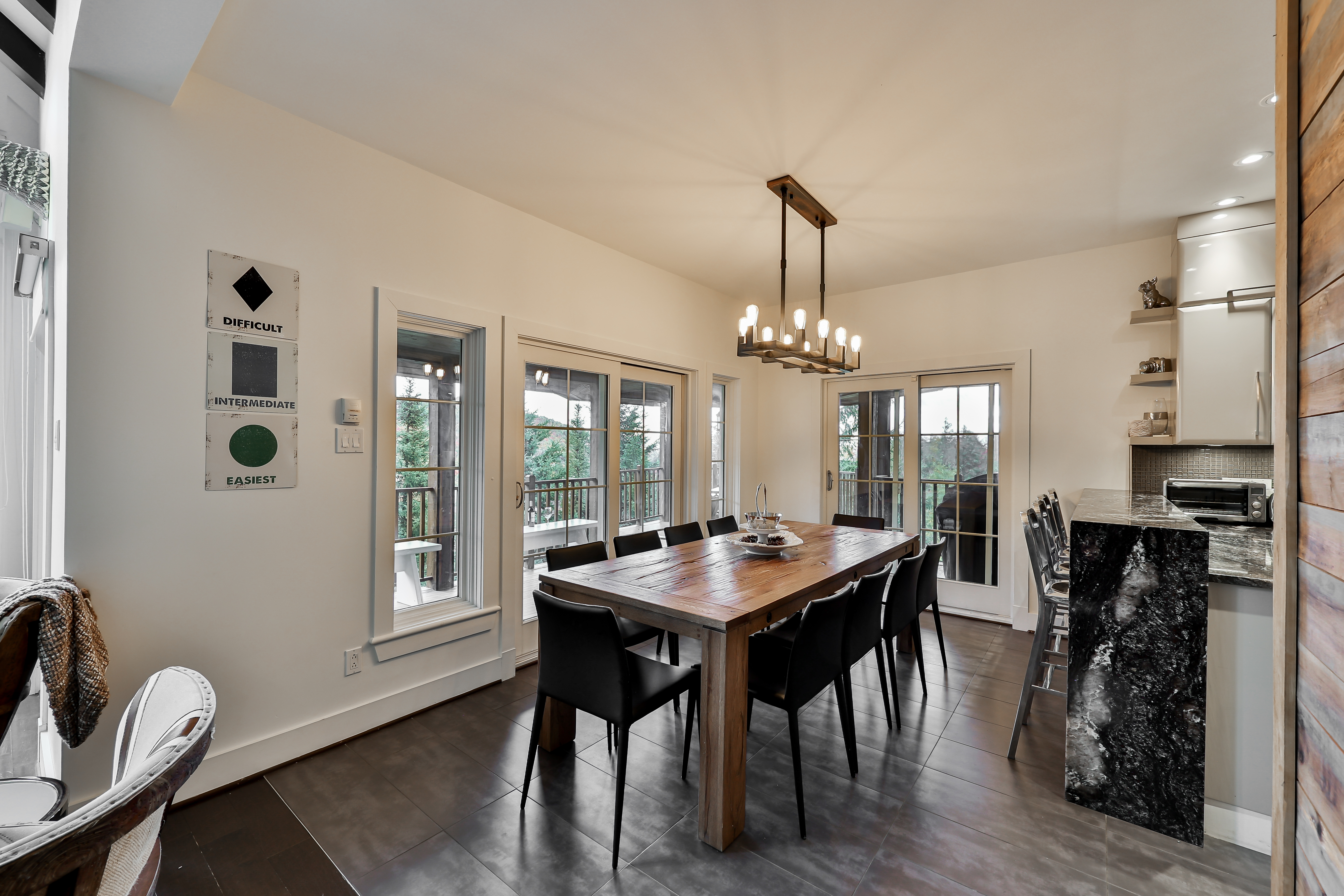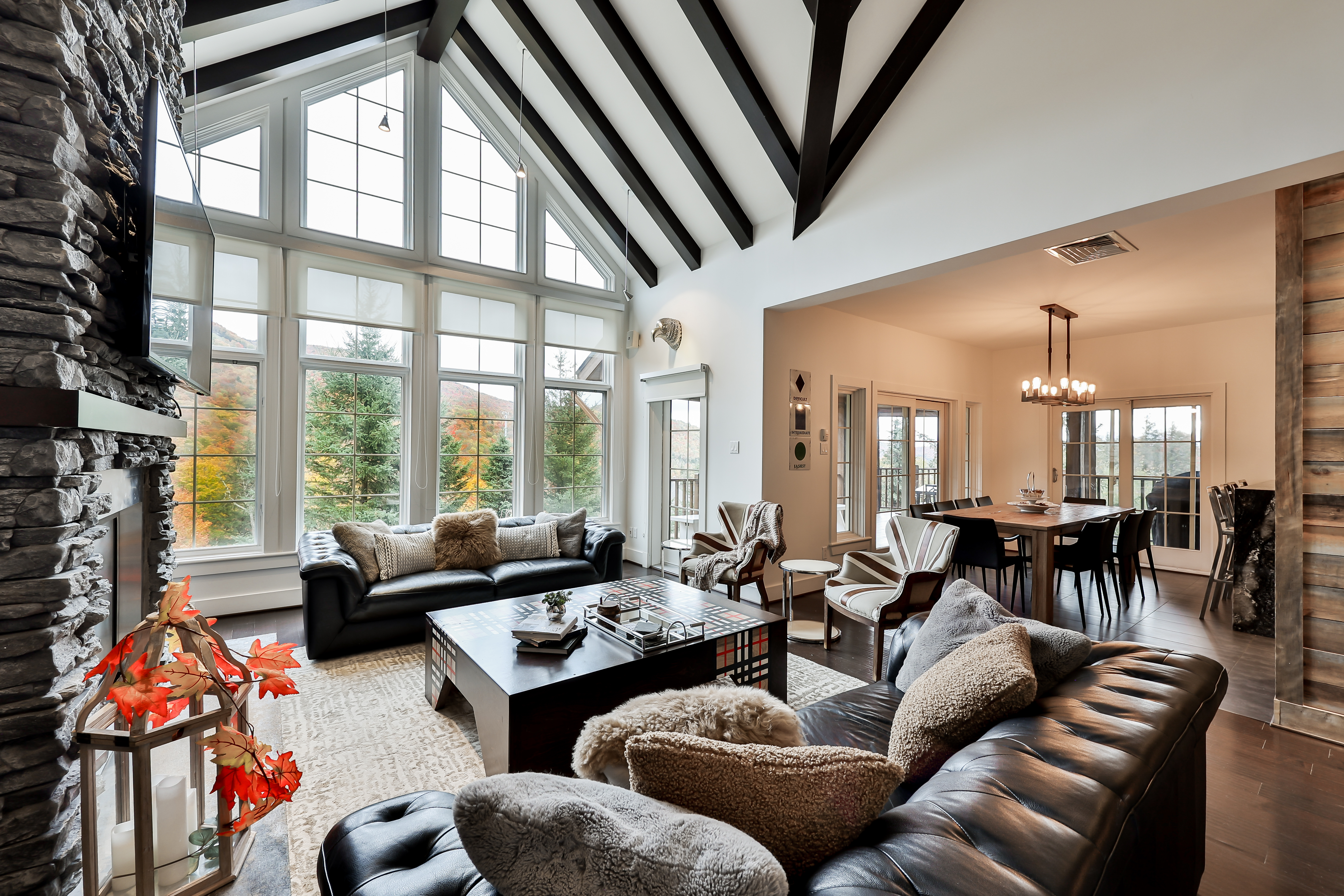 The best ski-in/ski-out location in Mont-Tremblant with one of the best views of the mountain. Access the Nansen ski trails right from your backyard. We are only a 5 minute drive, or 15 minute walk away from the heart of Tremblant village. With 4 bedrooms, luxurious marble bathrooms and a re-designed kitchen, and private hot tub, Panache 768 is sure to provide a wonderful stay. This beautiful open concept property offers 4 bedrooms, 2 gas fireplaces, large marble showers, and the best views of the mountain. A private hot tub awaits your arrival. Just a 15 minute walk, or 5 minute drive, from the heart of Tremblant village. Easily access the Nansen ski trails from the backyard. CITQ:304091