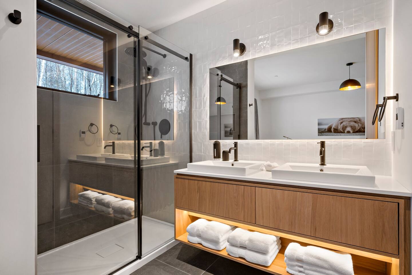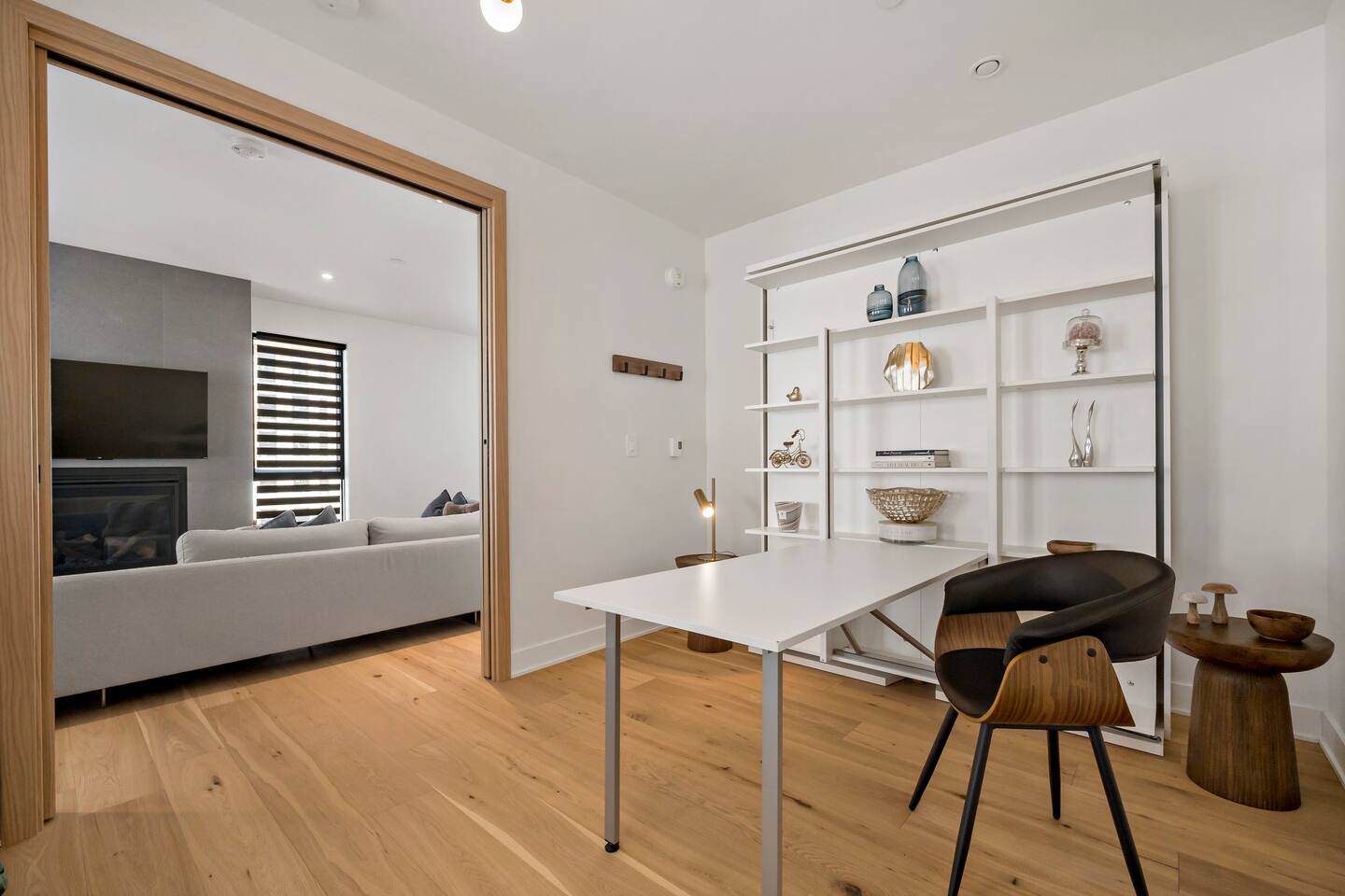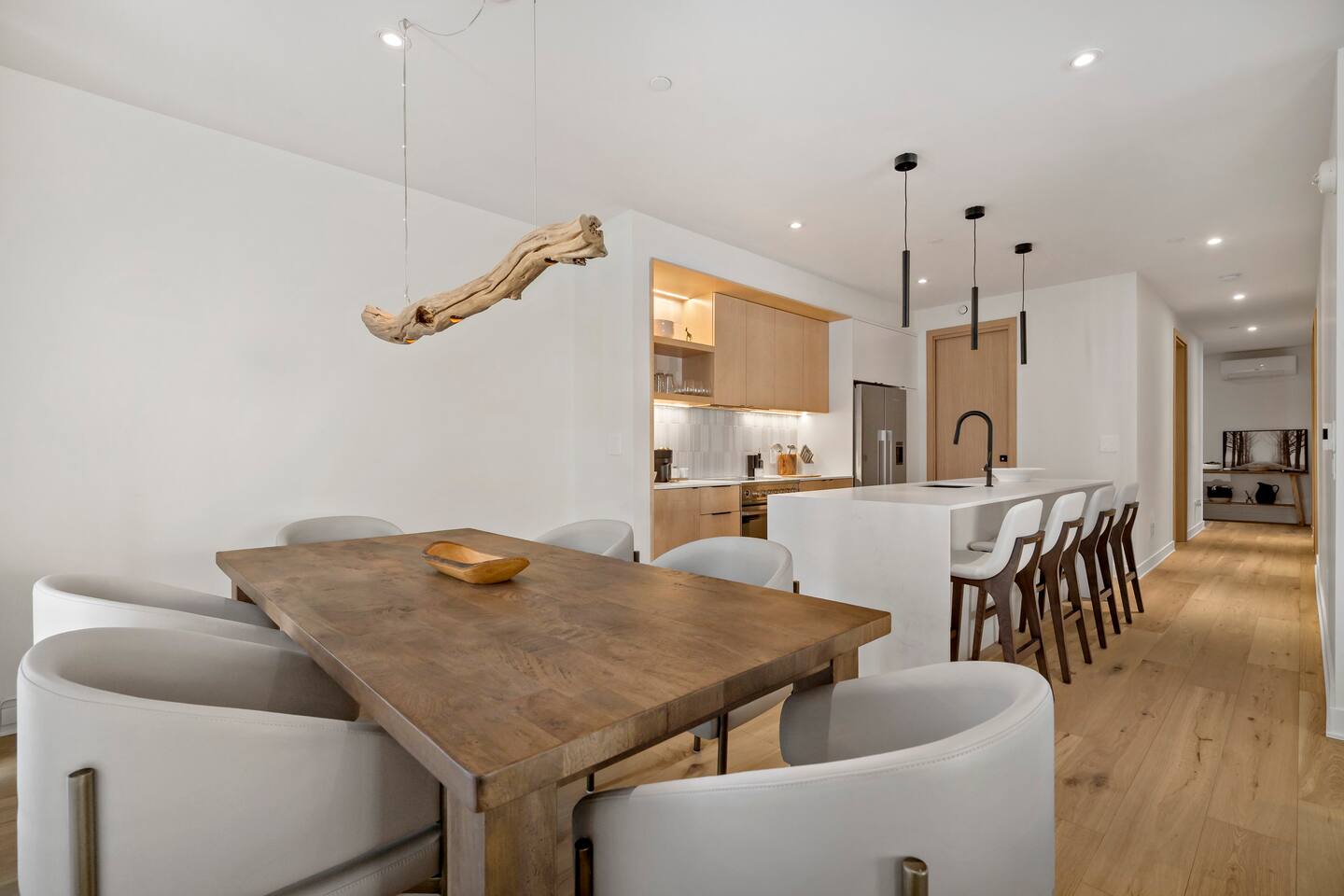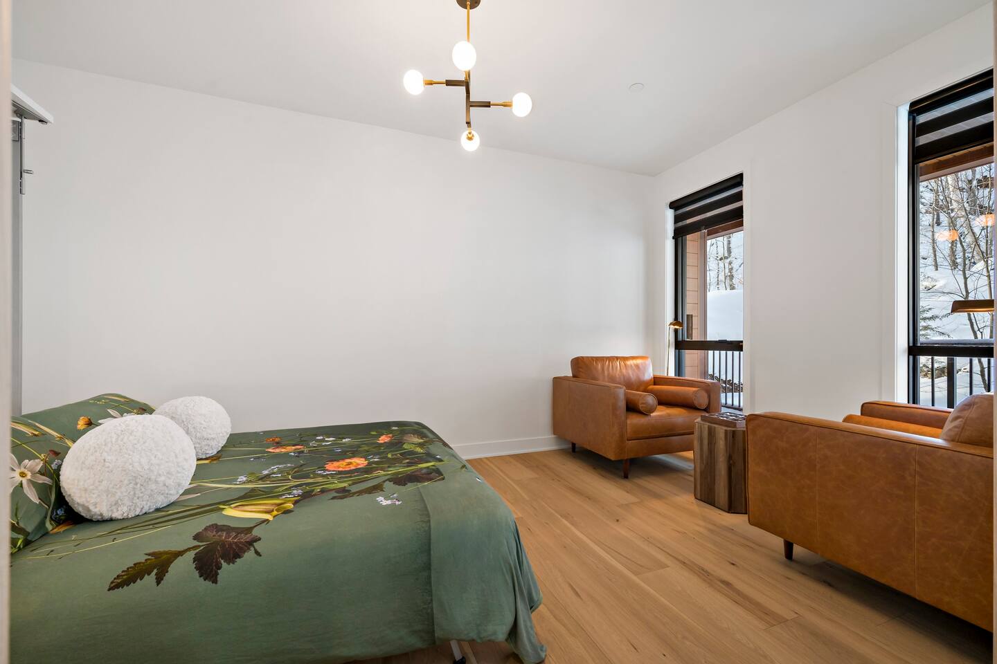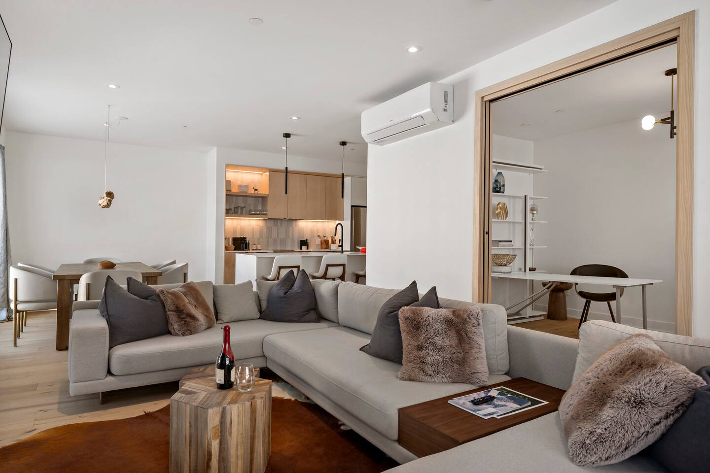 Escape to this stunning 3-bedroom luxury condo just steps from the Versant Soleil chairlift! Perfect for families/groups, this modern retreat offers breathtaking views, a cozy living area with a fireplace, and a fully equipped kitchen. Enjoy access to the Algonquin trail (#39), ski storage, free indoor parking with an electric car charger, and a large balcony to enjoy the scenery. Close to restaurants, shops, and outdoor activities, this is the ultimate spot for your Mont-Tremblant adventure! The Space - Bedroom 1: King-size bed with an ensuite bathroom that has heated floors - Bedroom 2: King-size bed - Bedroom 3: Murphy bed that can be converted into a desk/bookcase or bed. *Please let us know in advance if you would like...