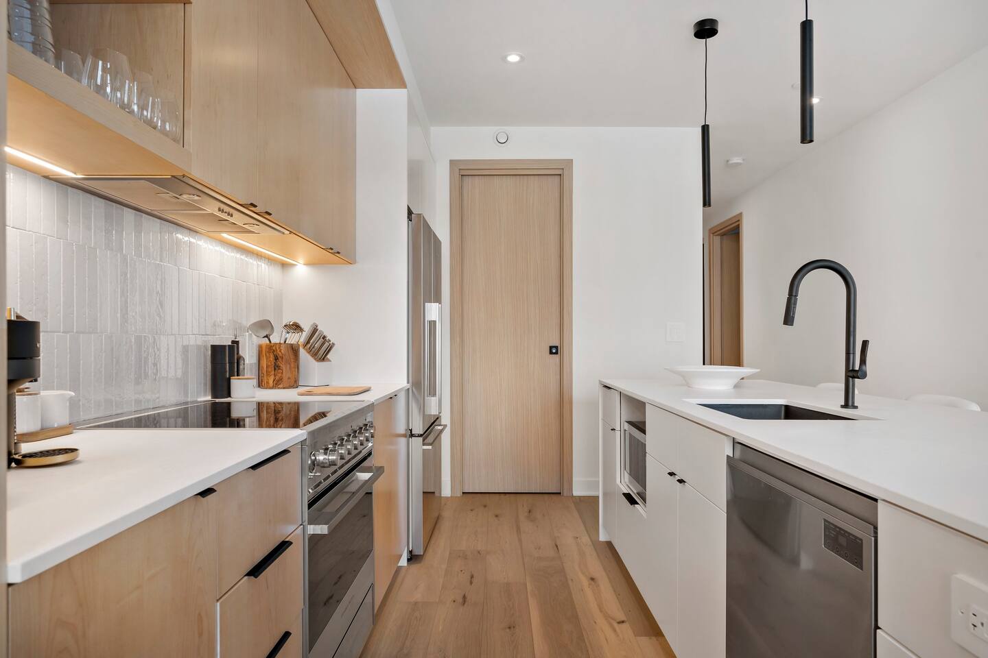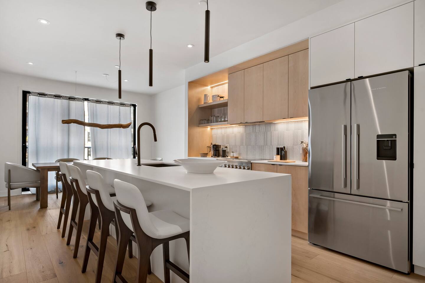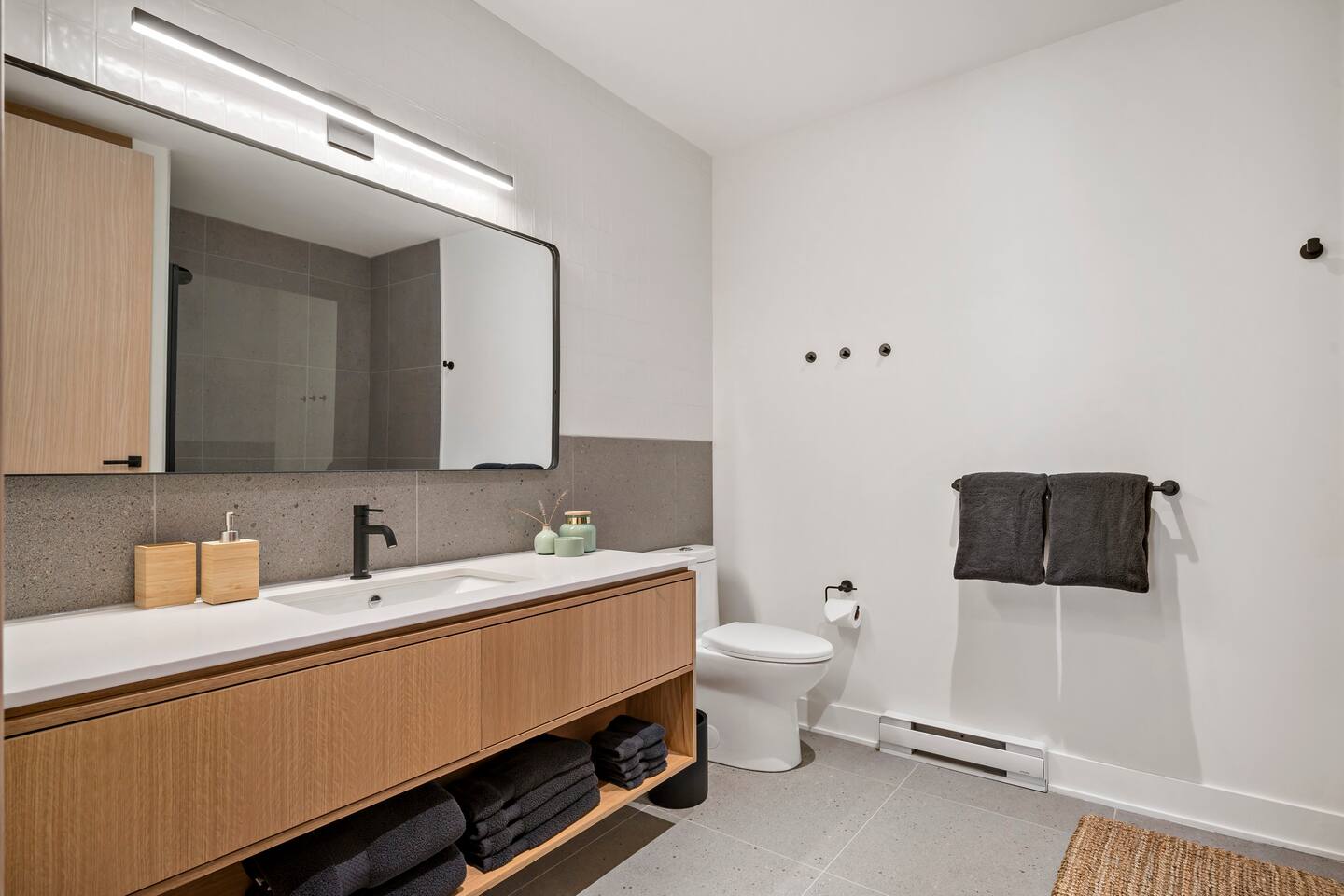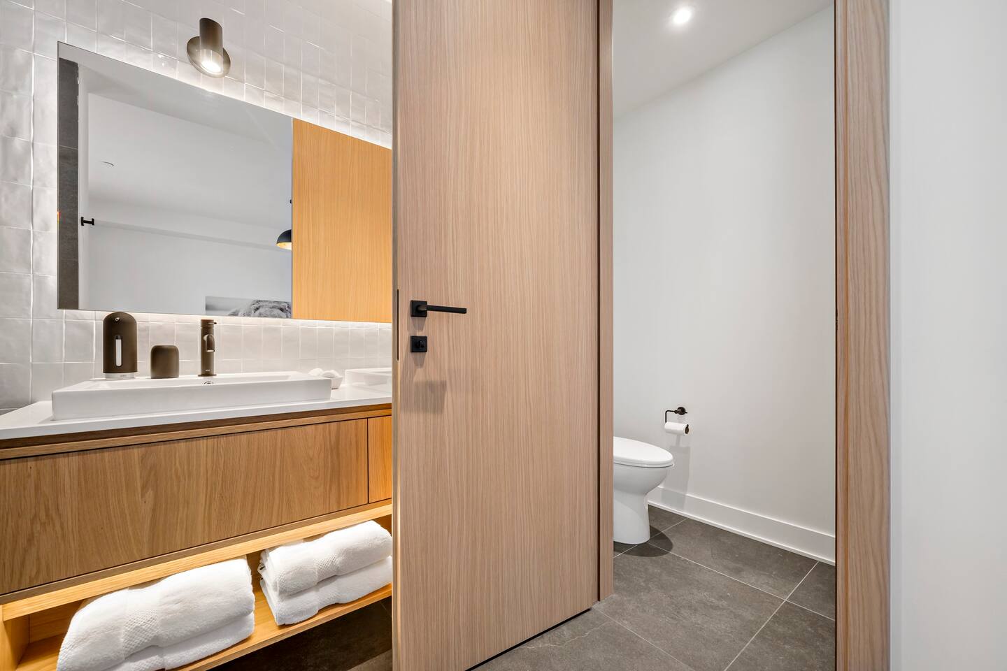 Escape to this stunning 3-bedroom luxury condo just steps from the Versant Soleil chairlift! Perfect for families/groups, this modern retreat offers breathtaking views, a cozy living area with a fireplace, and a fully equipped kitchen. Enjoy access to the Algonquin trail (#39), ski storage, free indoor parking with an electric car charger, and a large balcony to enjoy the scenery. Close to restaurants, shops, and outdoor activities, this is the ultimate spot for your Mont-Tremblant adventure! The Space - Bedroom 1: King-size bed with an ensuite bathroom that has heated floors - Bedroom 2: King-size bed - Bedroom 3: Murphy bed that can be converted into a desk/bookcase or bed. *Please let us know in advance if you would like...