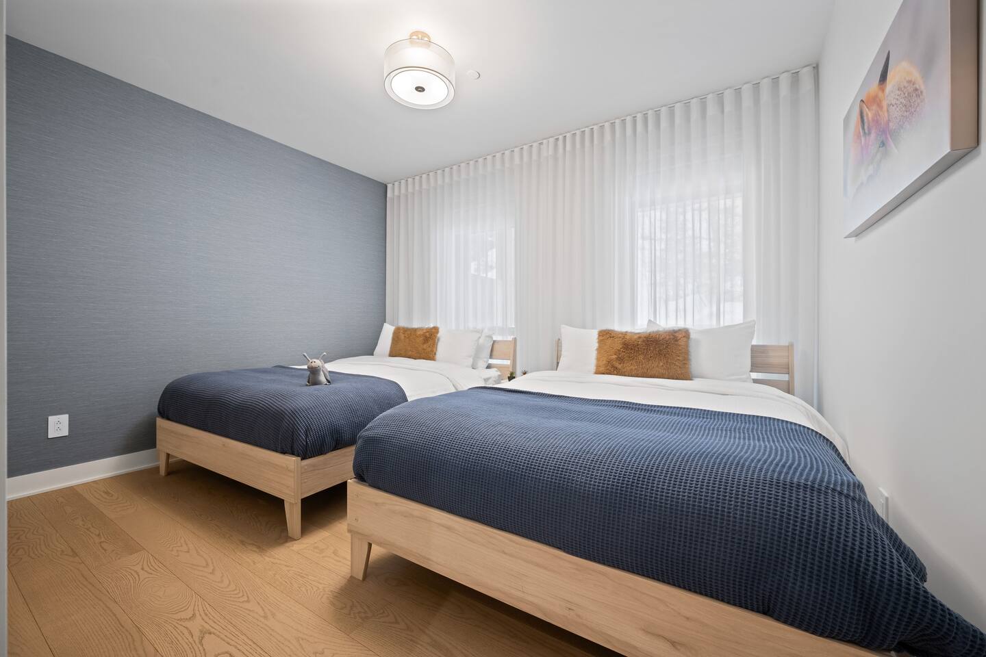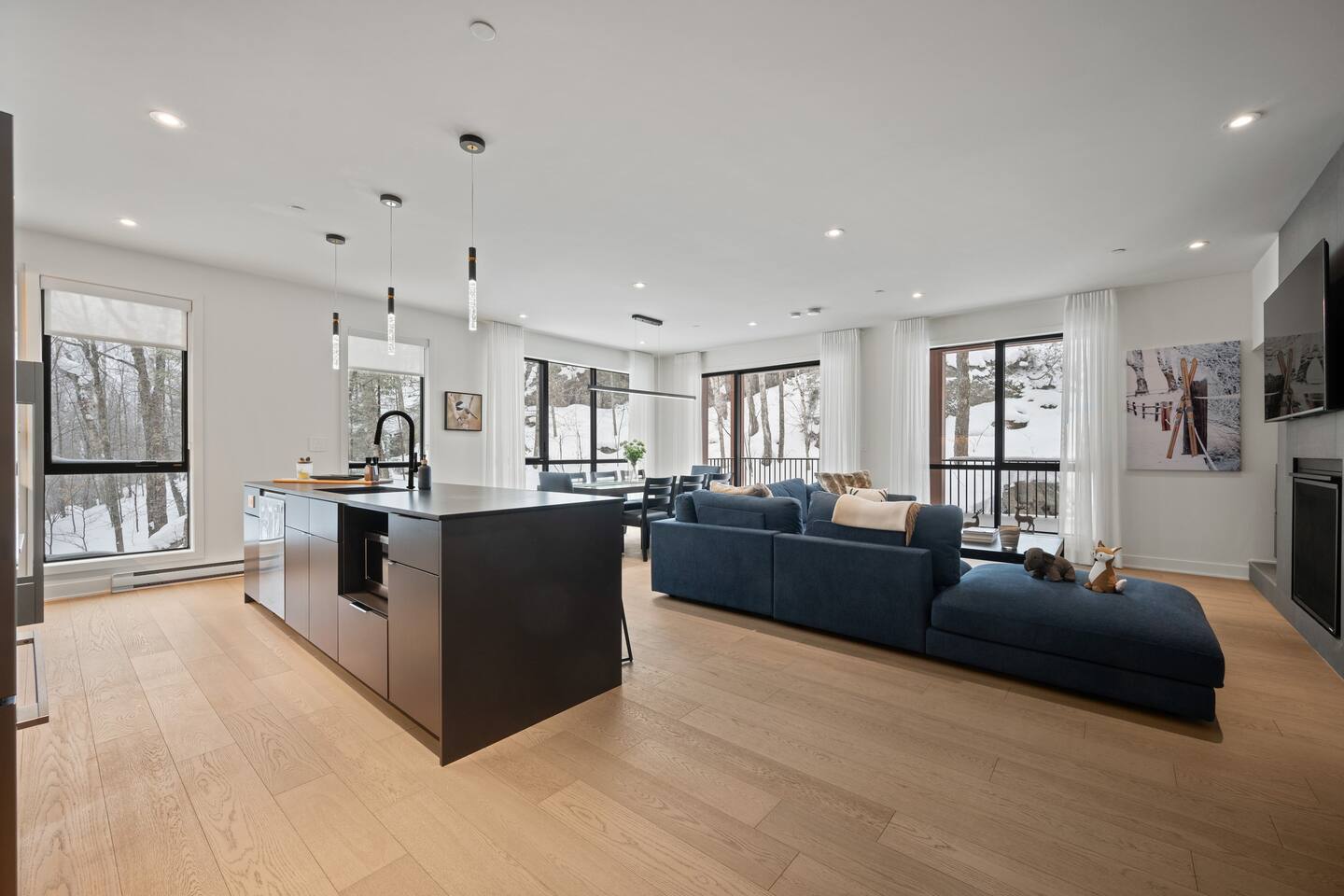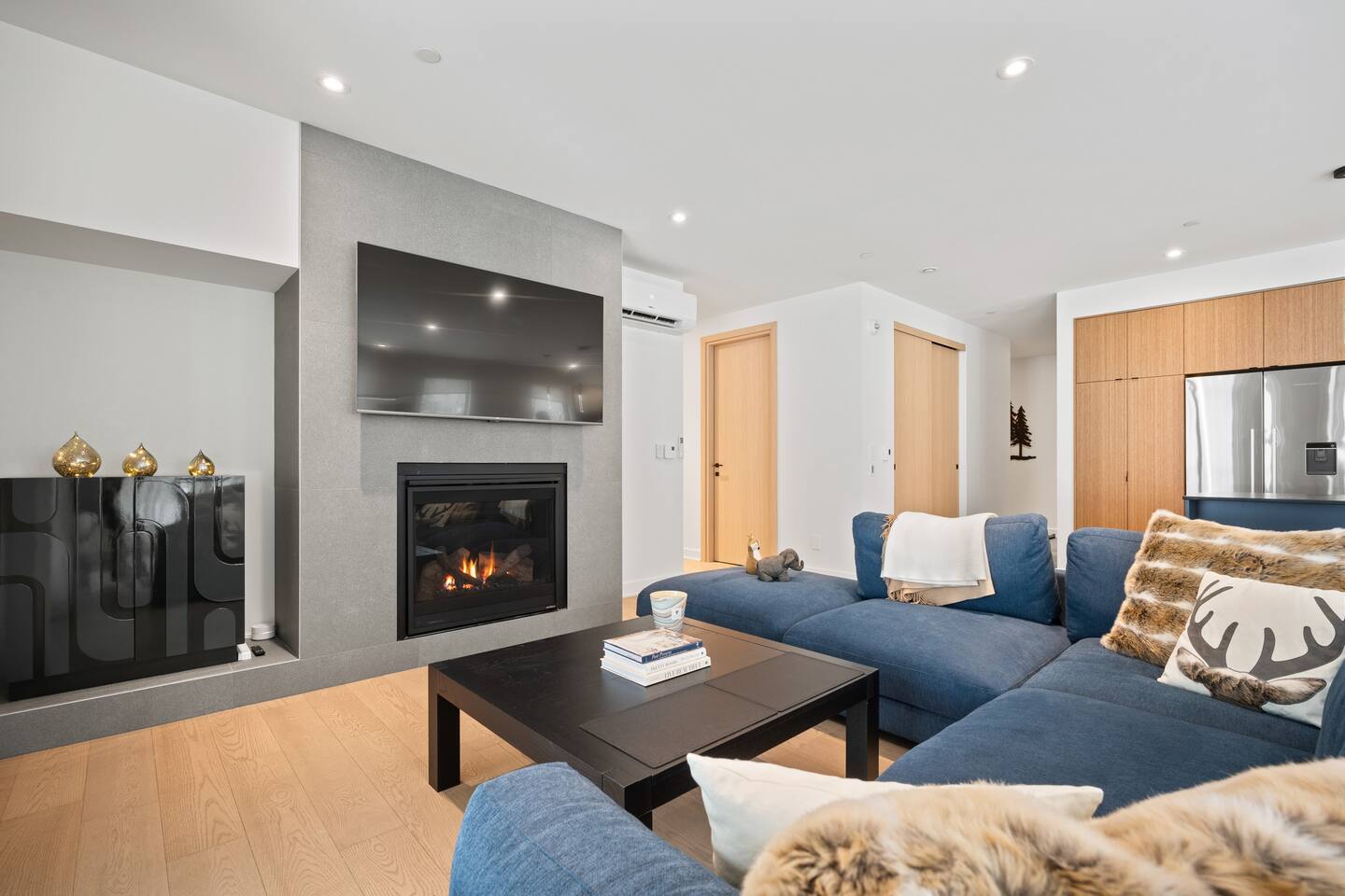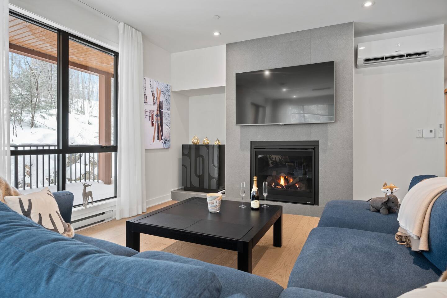 Escape to this stunning 3-bedroom luxury condo, thoughtfully designed to accommodate up to 10 guests. Just steps from the Versant Soleil chairlift, this modern retreat features a cozy living area with a fireplace, a fully equipped kitchen, and breathtaking views. Enjoy direct access to the Algonquin Trail (#39), ski storage, free indoor parking spot with an EV charger, and a spacious balcony. Conveniently near restaurants, shops, and outdoor activities, it’s the perfect Mont-Tremblant getaway!  The Space: - Bedroom 1: King-size bed with an ensuite bathroom that has heated floors  - Bedroom 2: Two queen beds  - Bedroom 3: Queen bed  - Couch: Can comfortably sleep 2 people (we have extra blankets and pillows)  - Bathrooms: Two full bathrooms, including a...
