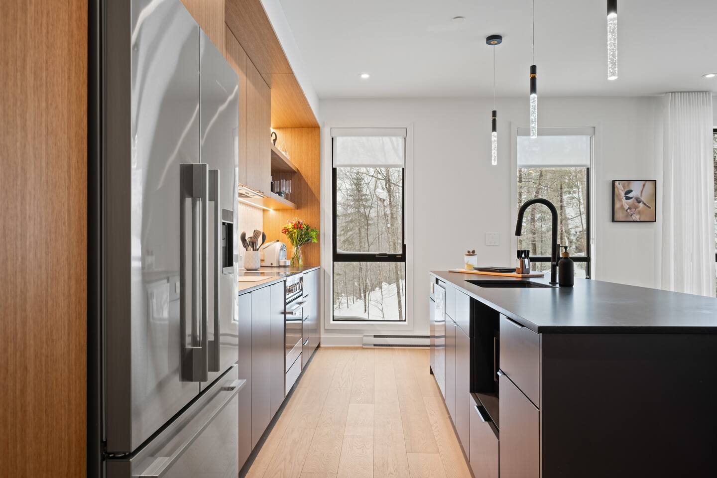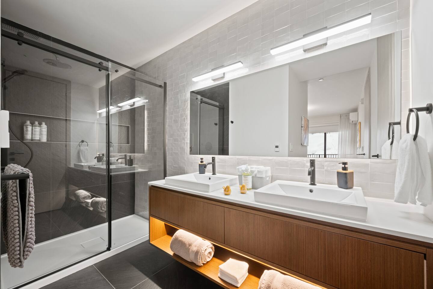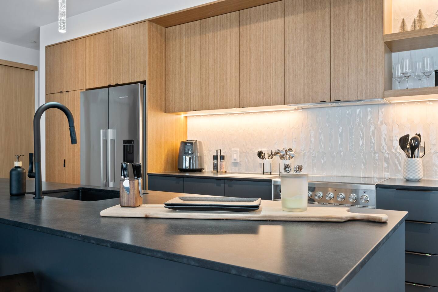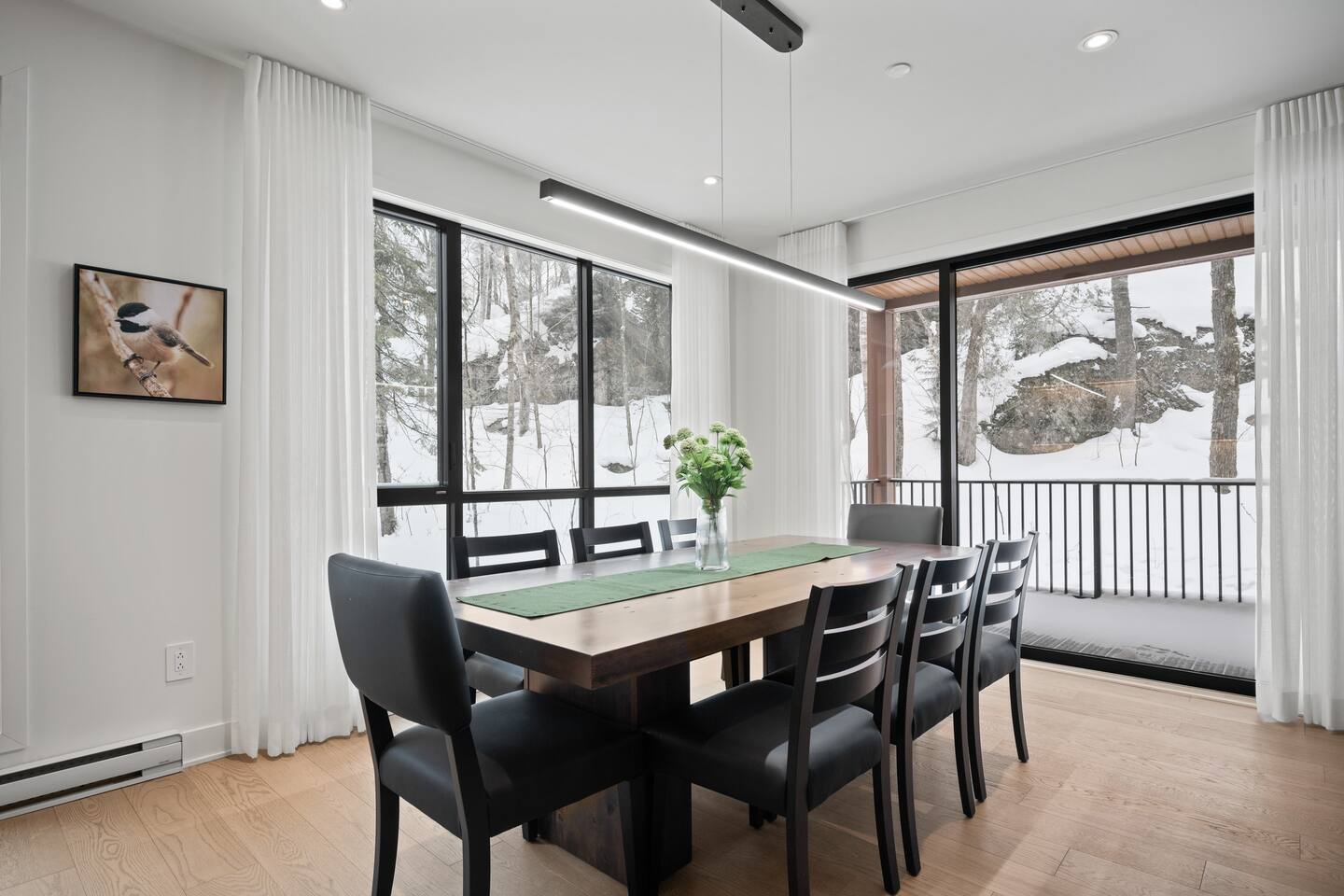 Escape to this stunning 3-bedroom luxury condo, thoughtfully designed to accommodate up to 10 guests. Just steps from the Versant Soleil chairlift, this modern retreat features a cozy living area with a fireplace, a fully equipped kitchen, and breathtaking views. Enjoy direct access to the Algonquin Trail (#39), ski storage, free indoor parking spot with an EV charger, and a spacious balcony. Conveniently near restaurants, shops, and outdoor activities, it’s the perfect Mont-Tremblant getaway!  The Space: - Bedroom 1: King-size bed with an ensuite bathroom that has heated floors  - Bedroom 2: Two queen beds  - Bedroom 3: Queen bed  - Couch: Can comfortably sleep 2 people (we have extra blankets and pillows)  - Bathrooms: Two full bathrooms, including a...
