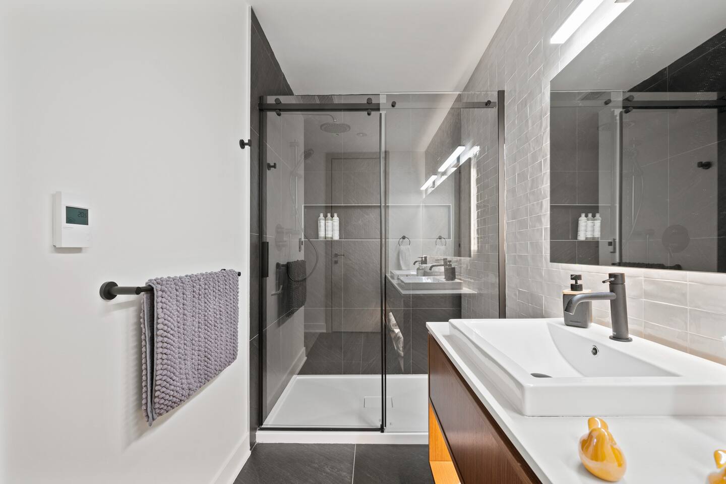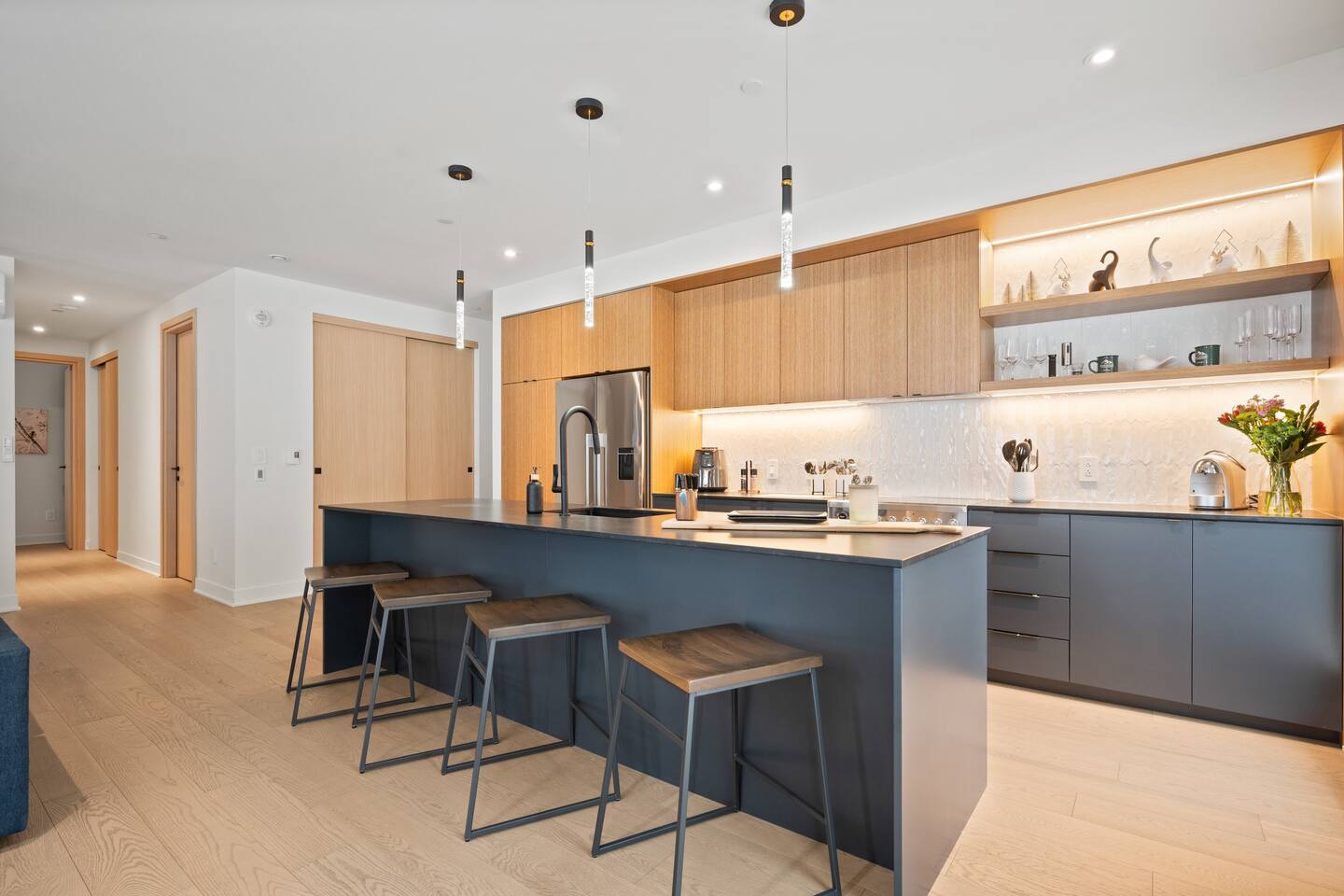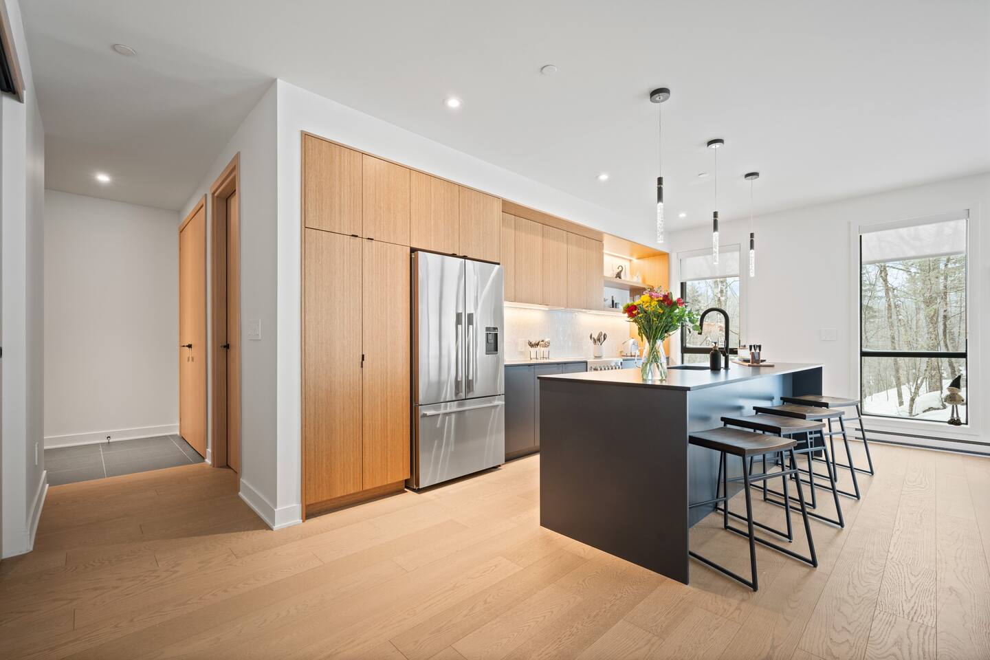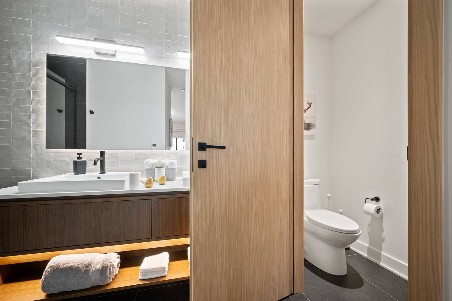 Escape to this stunning 3-bedroom luxury condo, thoughtfully designed to accommodate up to 10 guests. Just steps from the Versant Soleil chairlift, this modern retreat features a cozy living area with a fireplace, a fully equipped kitchen, and breathtaking views. Enjoy direct access to the Algonquin Trail (#39), ski storage, free indoor parking spot with an EV charger, and a spacious balcony. Conveniently near restaurants, shops, and outdoor activities, it’s the perfect Mont-Tremblant getaway!  The Space: - Bedroom 1: King-size bed with an ensuite bathroom that has heated floors  - Bedroom 2: Two queen beds  - Bedroom 3: Queen bed  - Couch: Can comfortably sleep 2 people (we have extra blankets and pillows)  - Bathrooms: Two full bathrooms, including a...
