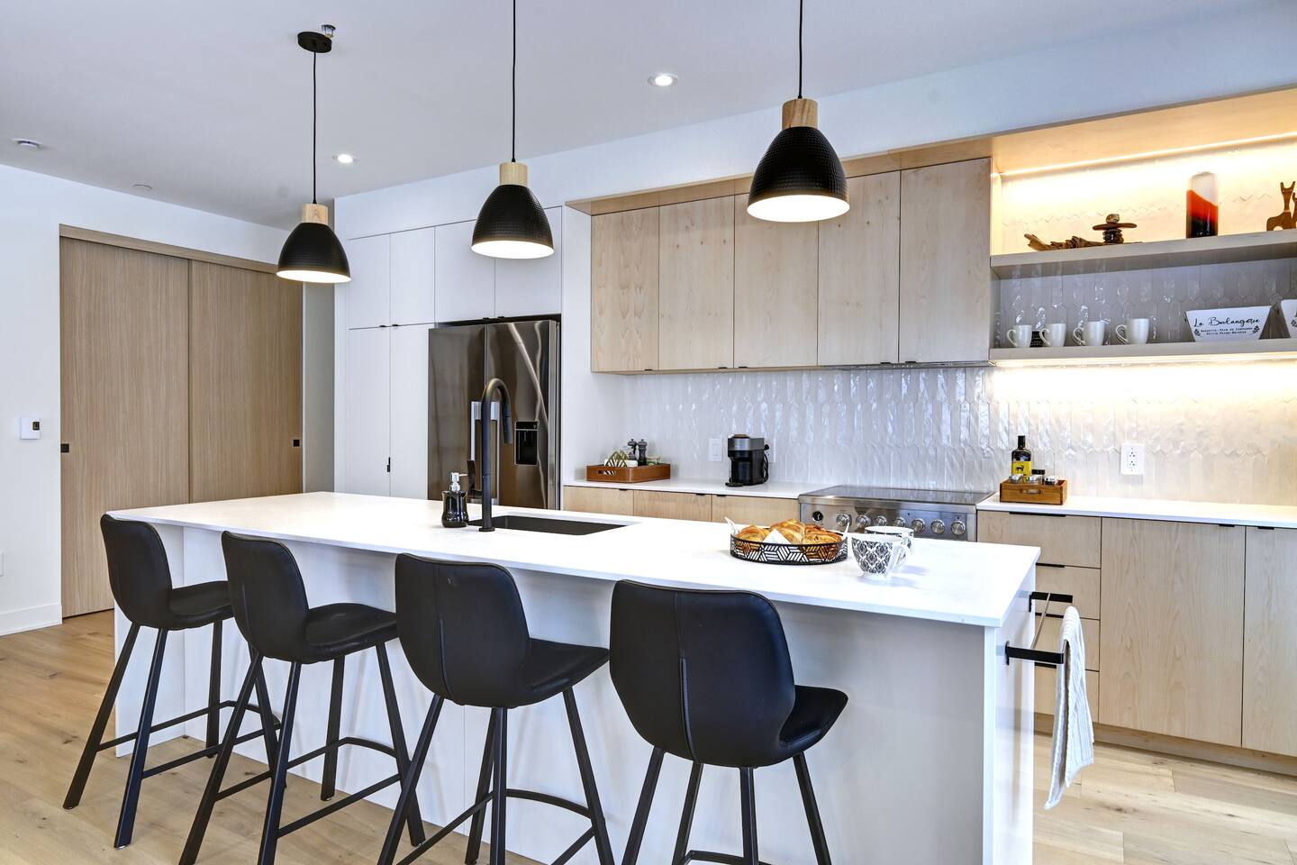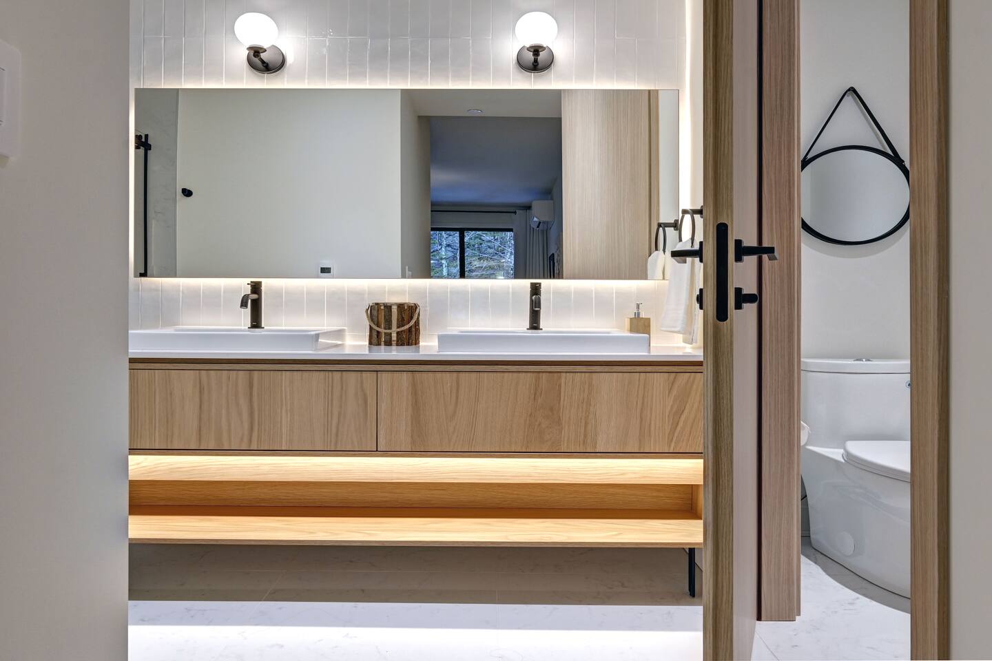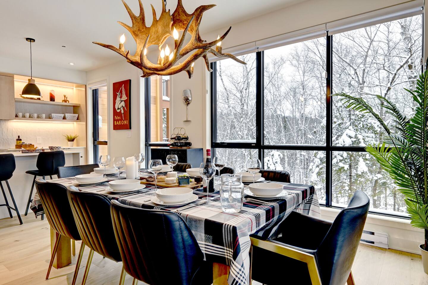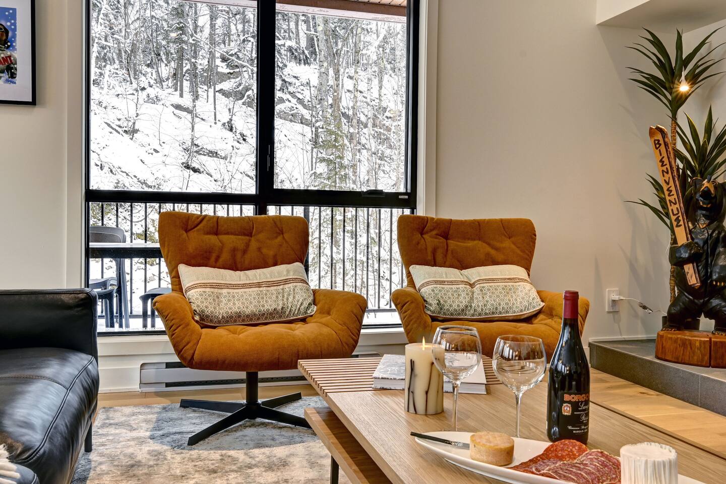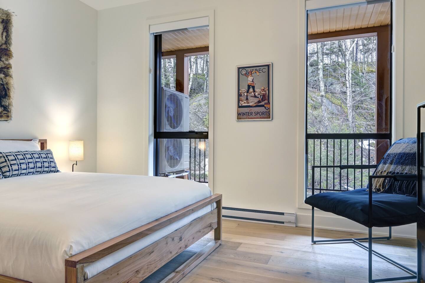 Escape to this spacious, luxurious new condo on Tremblant's Versant Soleil. A 7-minute walk from the Algonquin green ski trail. Direct access (20 meters) to the Nord-Sud hiking, mountain biking and alpine trail. This condo is located near the Casino, Golf Le Géant and Golf Le Diable. Just a 5-minute drive away, enjoy Tremblant's pedestrian village with its restaurants and boutiques. Spend your stay in a bright, modern space, fully equipped to relax in top-of-the-range comfort. The space - Bedroom 1: King-size bed with an ensuite bathroom that has heated floors- Bedroom 2: Queen-size bed- Bedroom 3: Bunk-bed with 2 singles and 1 double- Bathrooms: Two full bathrooms, including a master en-suite with heated floors, providing ample space to refresh...