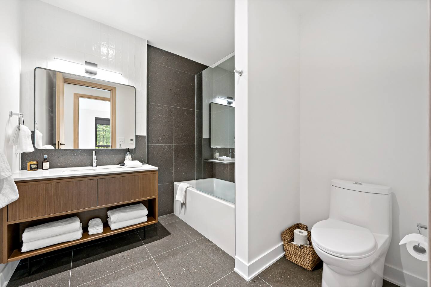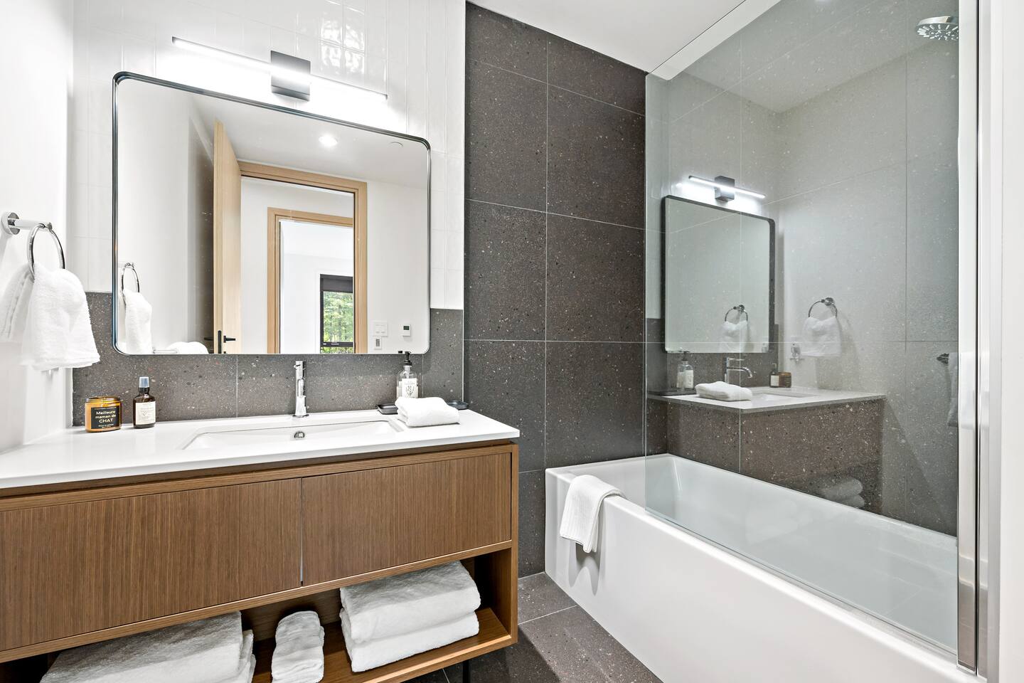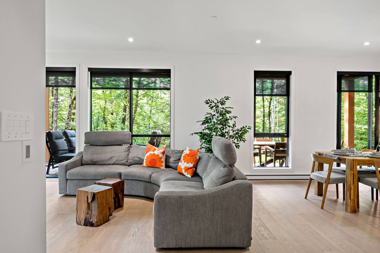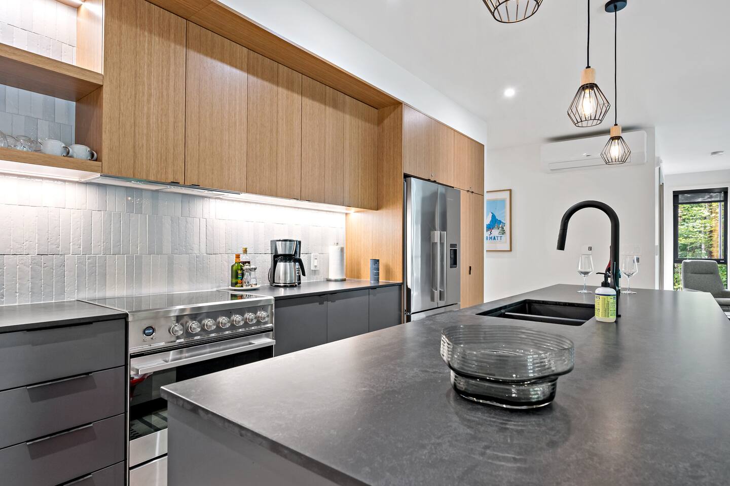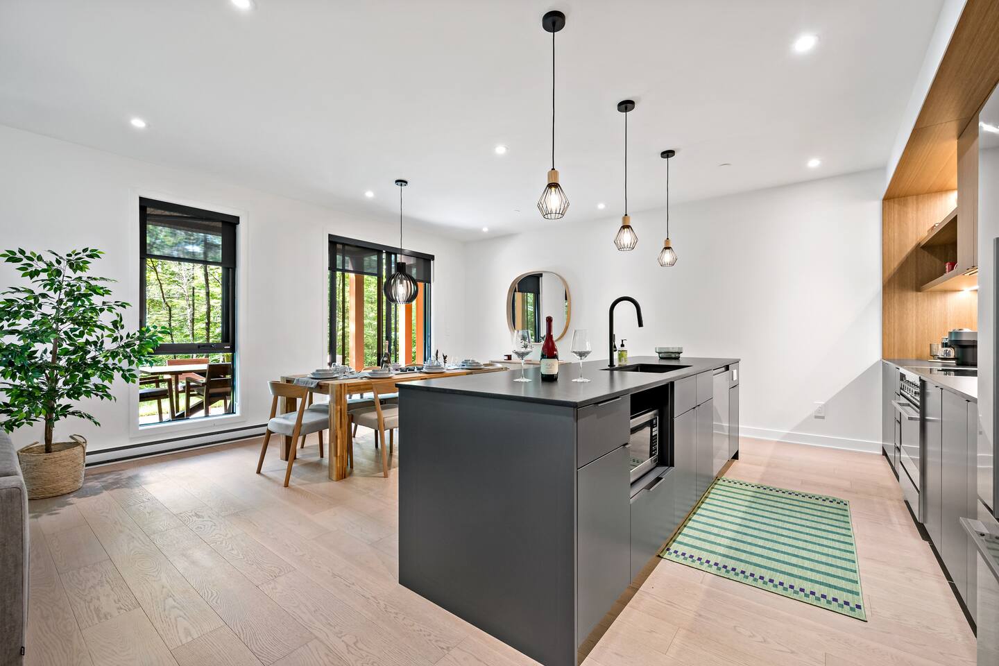 Escape to this stunning luxury condo, designed for up to 8 guests and ideal for a Tremblant retreat. With beach access included, you are just steps from hiking trails, this modern forest getaway offers direct access to hiking, biking, and breathtaking scenery. Relax in the cozy living area with a fireplace, cook in the fully equipped kitchen, or unwind on the spacious balcony with serene views. Includes storage, free parking with EV charger, proximity to restaurants, shops, the Casino and golf!