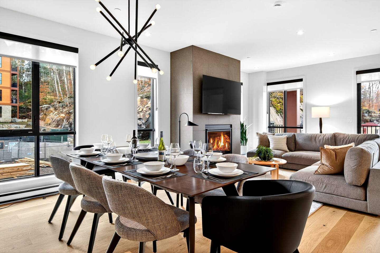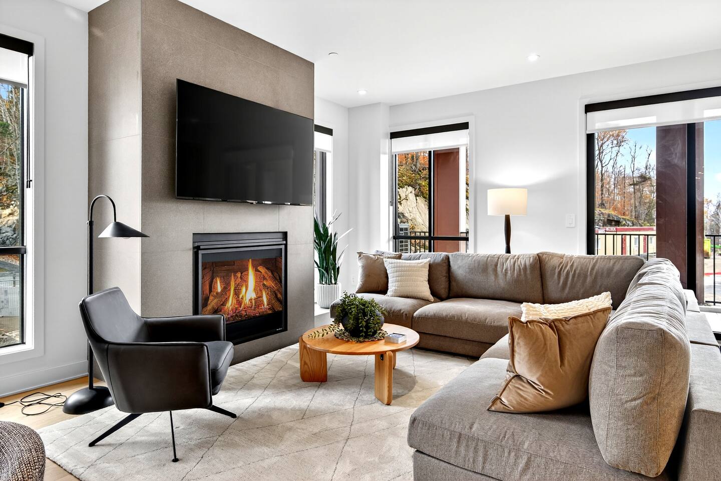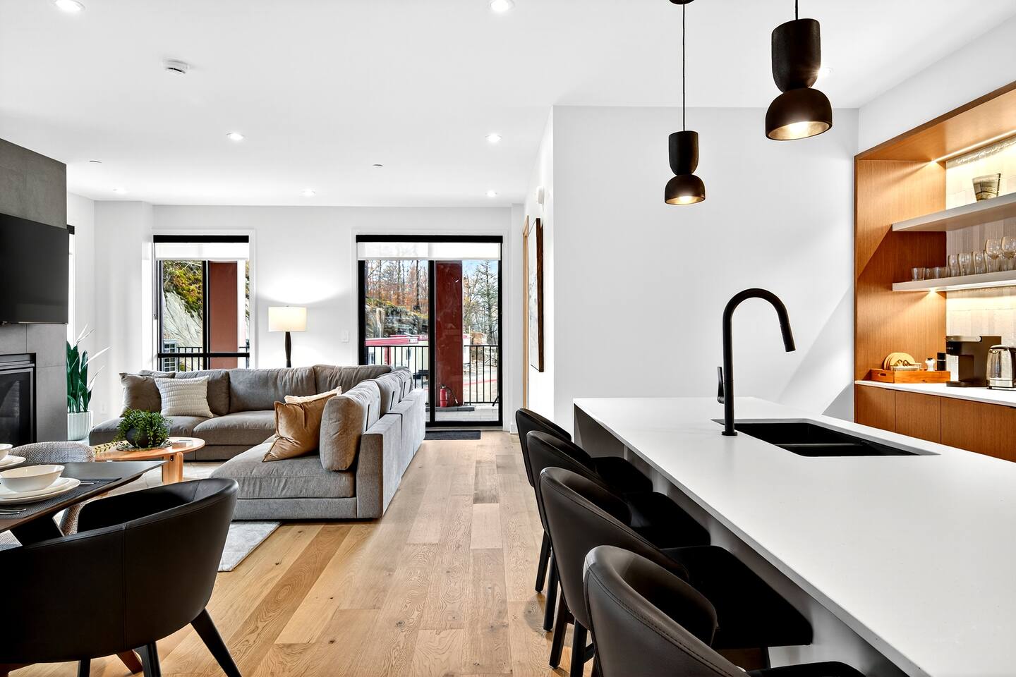 Escape to this brand-new condo on Versant Soleil, just 200m from the L’Algonquin ski trail and a short 500m to the Le Soleil chairlift. Perfect for winter sports lovers, families, or friends it features modern alpine design, stylish furnishings, and panoramic views of Tremblant Park. After a day on the slopes, relax by the fireplace, cook in the fully equipped kitchen, or unwind on the balcony. Includes free parking and proximity to restaurants, shops, the Casino, and golf. The Space: - Bedroom 1: King-size bed with an ensuite bathroom that has heated floors - Bedroom 2: Queen bed - Bedroom 3: Two queen beds - Bedroom 4: Double bed - Bathrooms: Two full bathrooms and 1 half bathroom, including a...