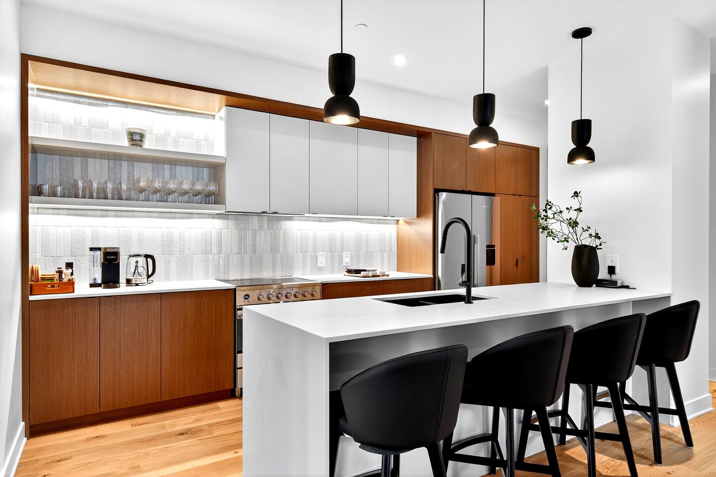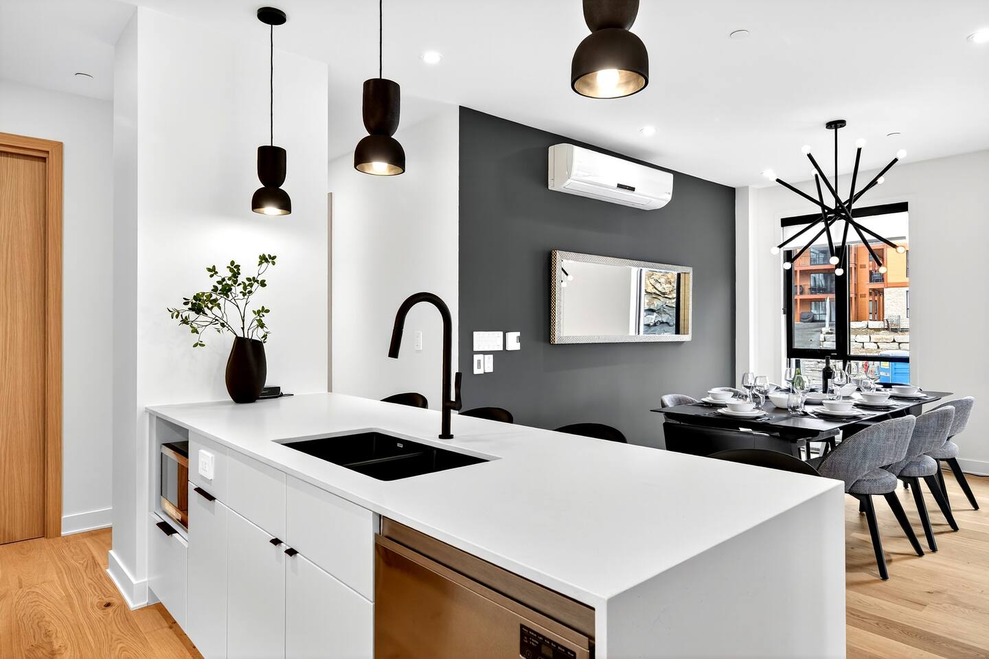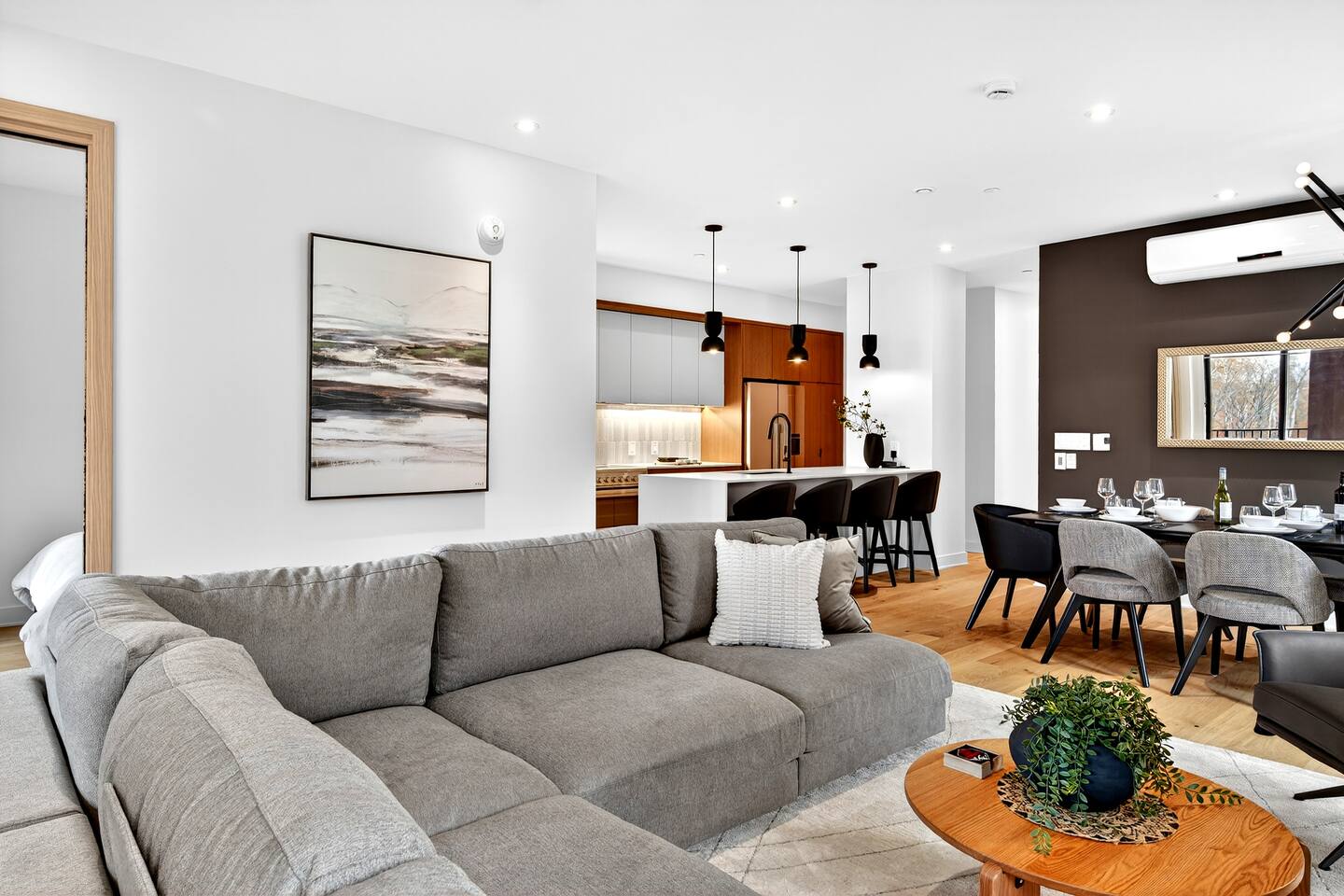 Escape to this brand-new condo on Versant Soleil, just 200m from the L’Algonquin ski trail and a short 500m to the Le Soleil chairlift. Perfect for winter sports lovers, families, or friends it features modern alpine design, stylish furnishings, and panoramic views of Tremblant Park. After a day on the slopes, relax by the fireplace, cook in the fully equipped kitchen, or unwind on the balcony. Includes free parking and proximity to restaurants, shops, the Casino, and golf. The Space: - Bedroom 1: King-size bed with an ensuite bathroom that has heated floors - Bedroom 2: Queen bed - Bedroom 3: Two queen beds - Bedroom 4: Double bed - Bathrooms: Two full bathrooms and 1 half bathroom, including a...