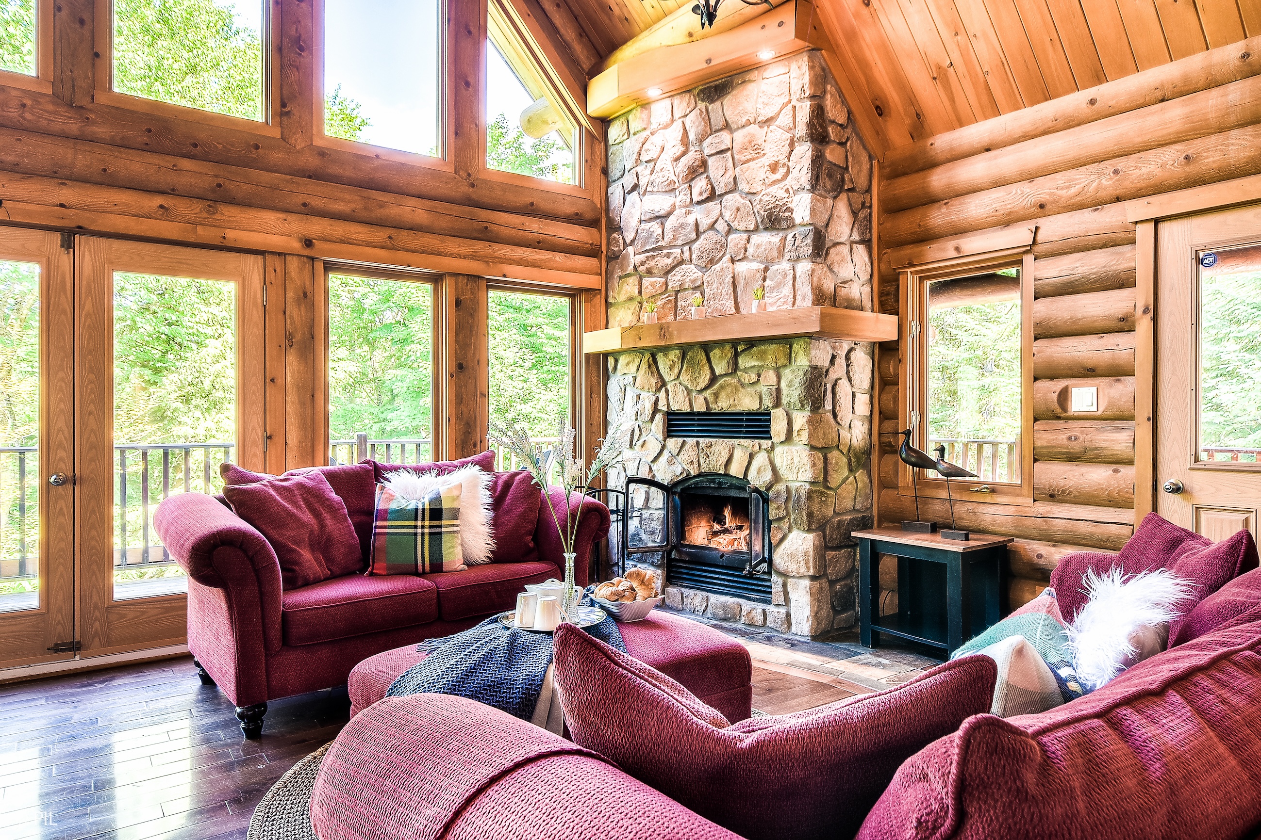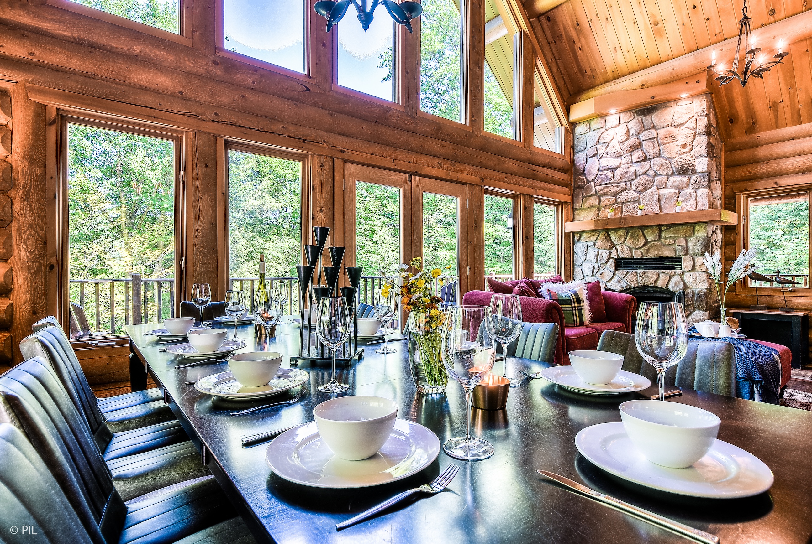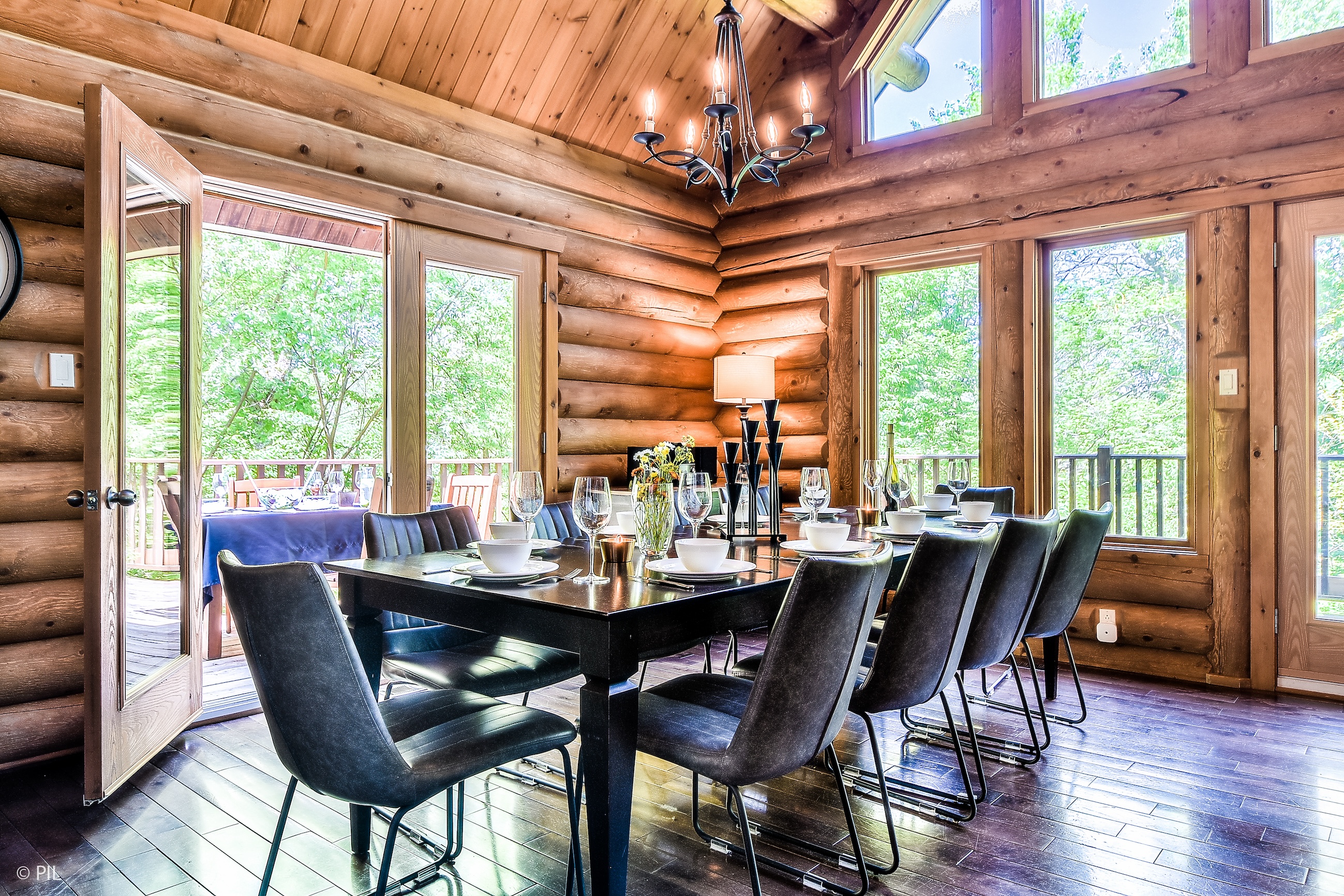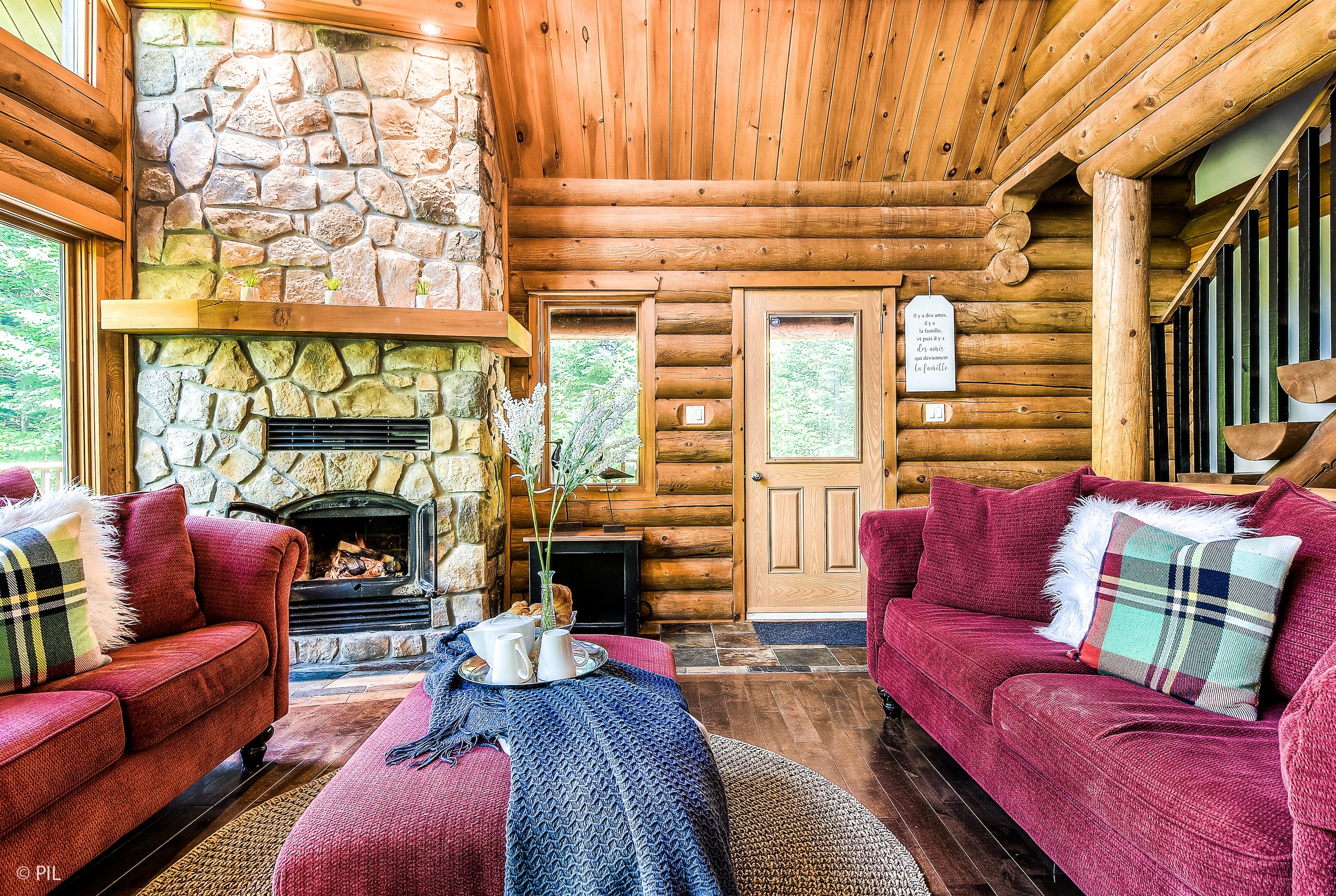 Indulge in the charm of this expansive log cabin featuring soaring cathedral ceilings in the primary living space, nestled right on the sought-after Blueberry Lake. The fully equipped kitchen stands ready to host delightful family feasts, adding the finishing touch to your ideal Laurentian retreat. Relax in front of the stunning stone fireplace, taking in breathtaking views through the panoramic windows after a day filled with winter adventures. In summer, dive in andenjoy the beautiful and peaceful Blueberry Lake. Whether you choose to unwind in the inviting hot tub or engage in a lively game of pool in the downstairs living area, this haven has it all. Plus, stay seamlessly connected with high-speed fiber optic internet for a perfect blend...