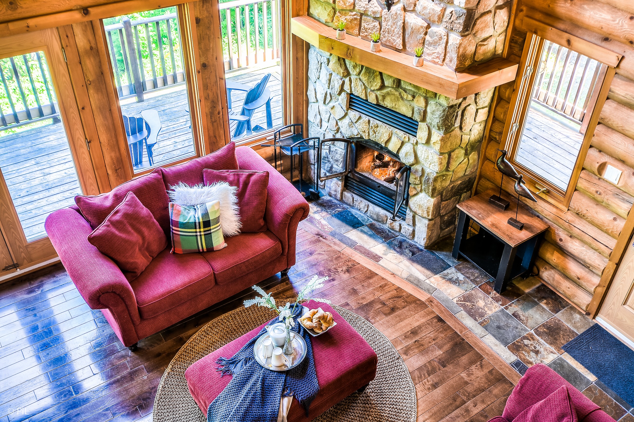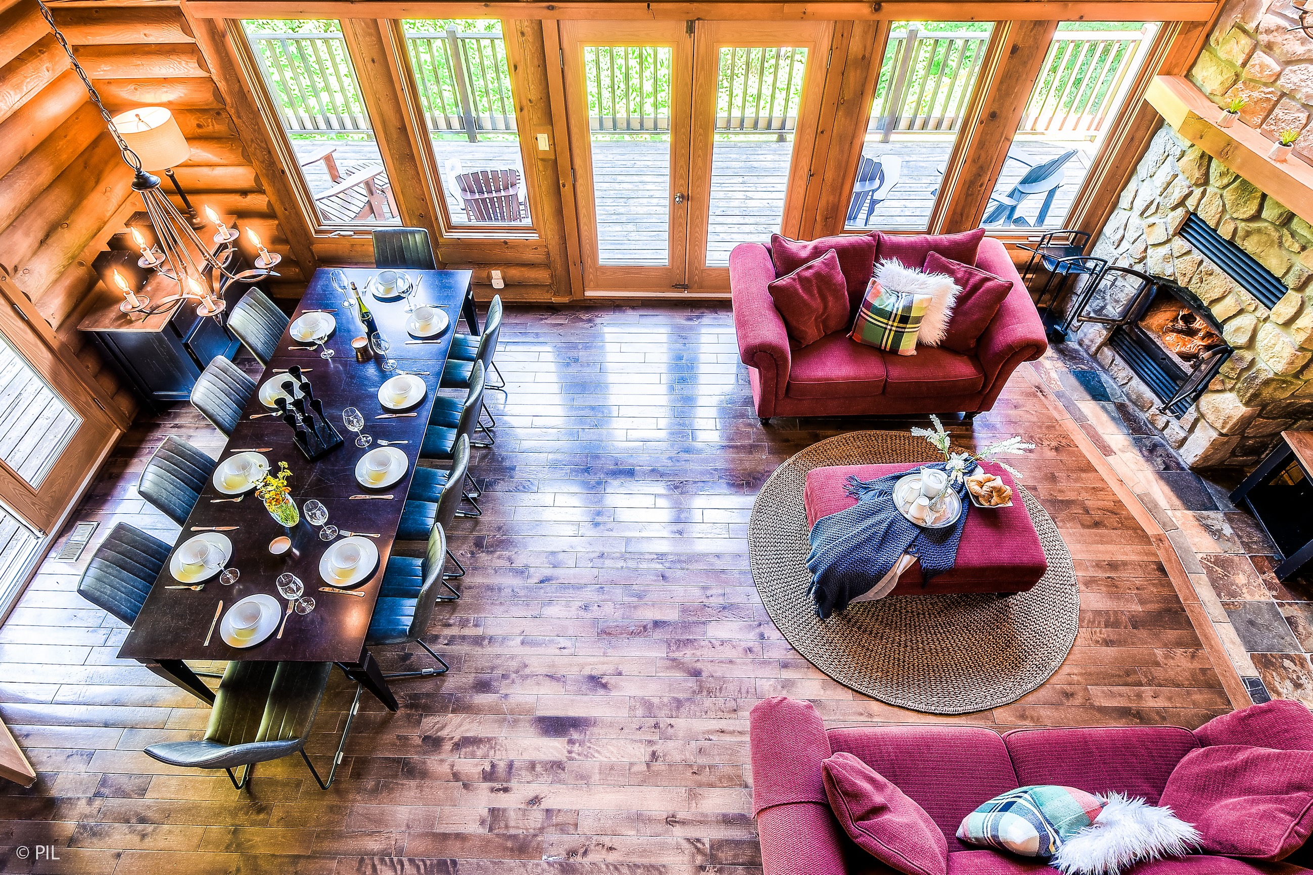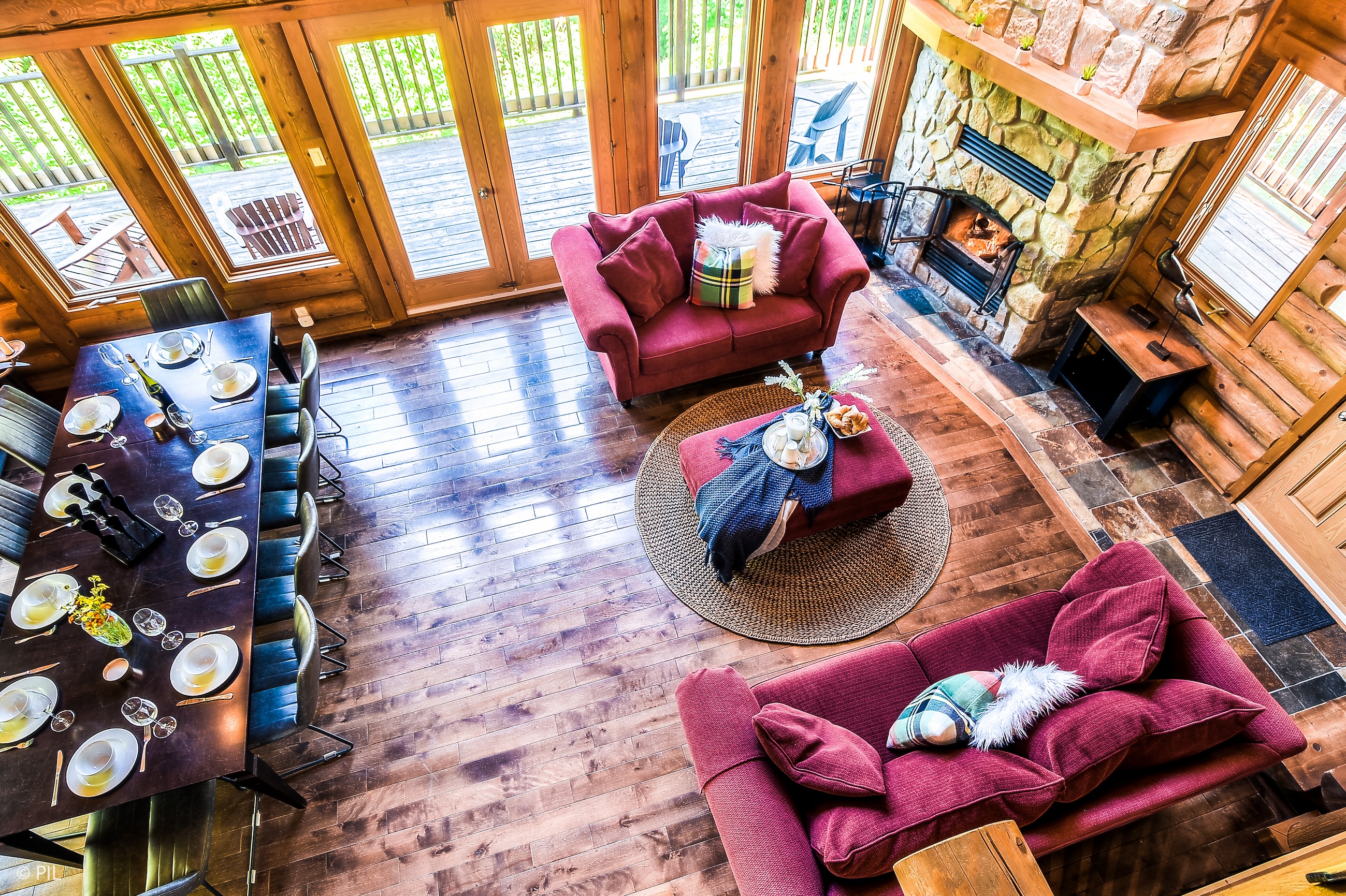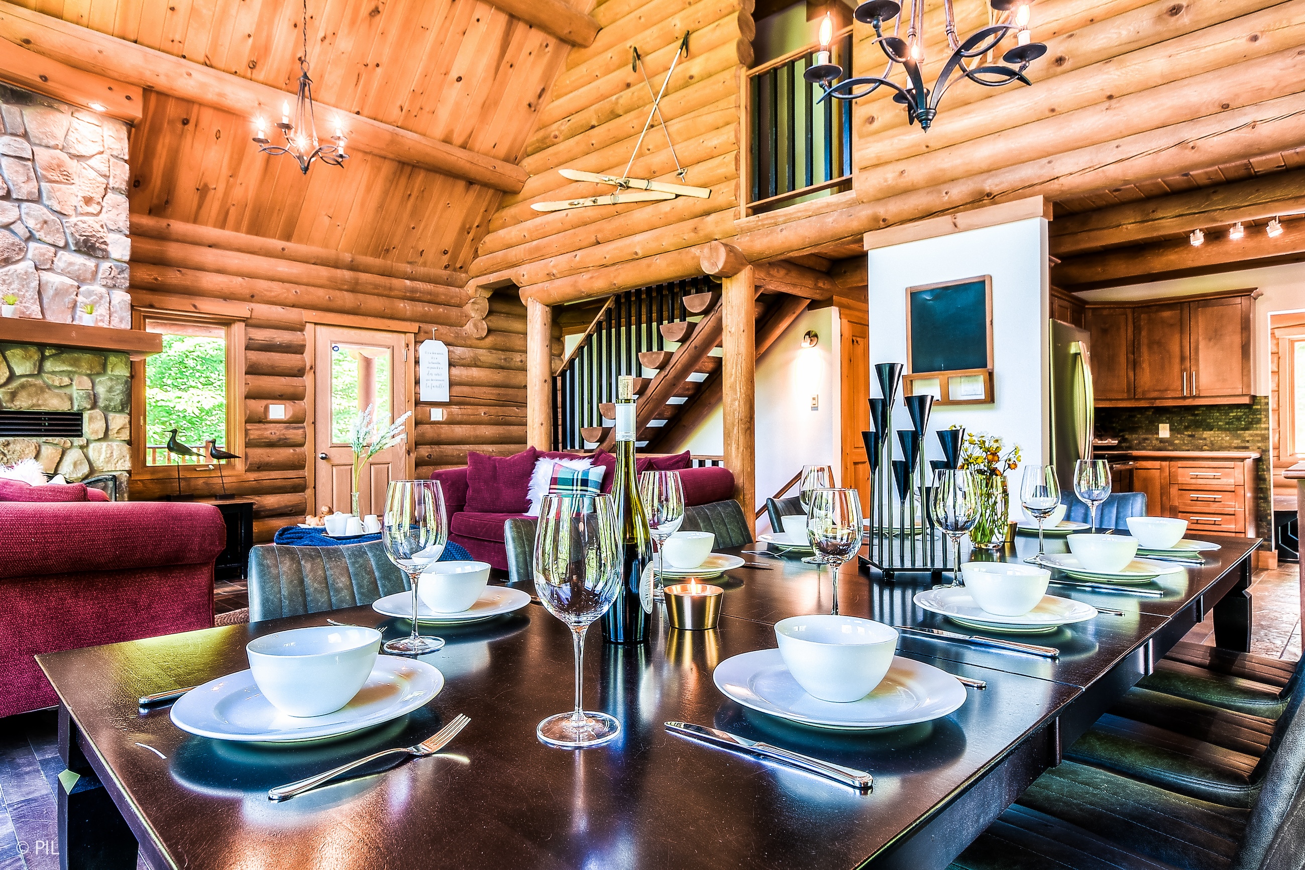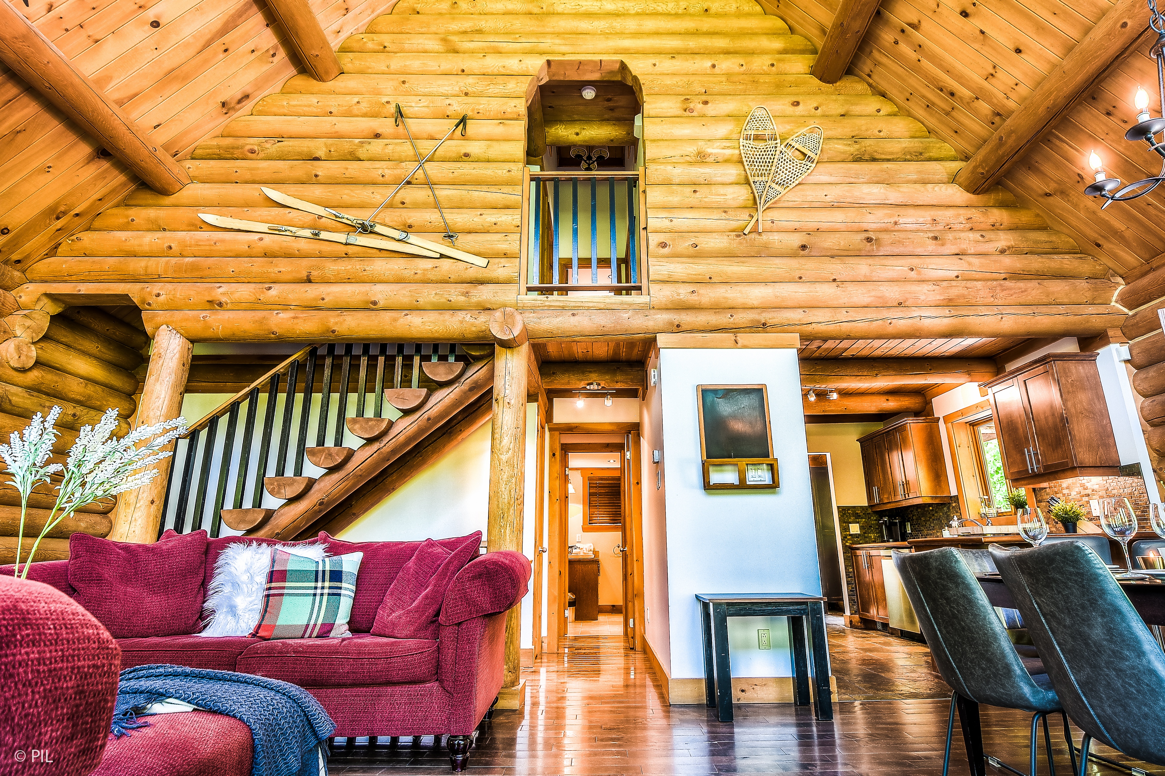 Indulge in the charm of this expansive log cabin featuring soaring cathedral ceilings in the primary living space, nestled right on the sought-after Blueberry Lake. The fully equipped kitchen stands ready to host delightful family feasts, adding the finishing touch to your ideal Laurentian retreat. Relax in front of the stunning stone fireplace, taking in breathtaking views through the panoramic windows after a day filled with winter adventures. In summer, dive in andenjoy the beautiful and peaceful Blueberry Lake. Whether you choose to unwind in the inviting hot tub or engage in a lively game of pool in the downstairs living area, this haven has it all. Plus, stay seamlessly connected with high-speed fiber optic internet for a perfect blend...